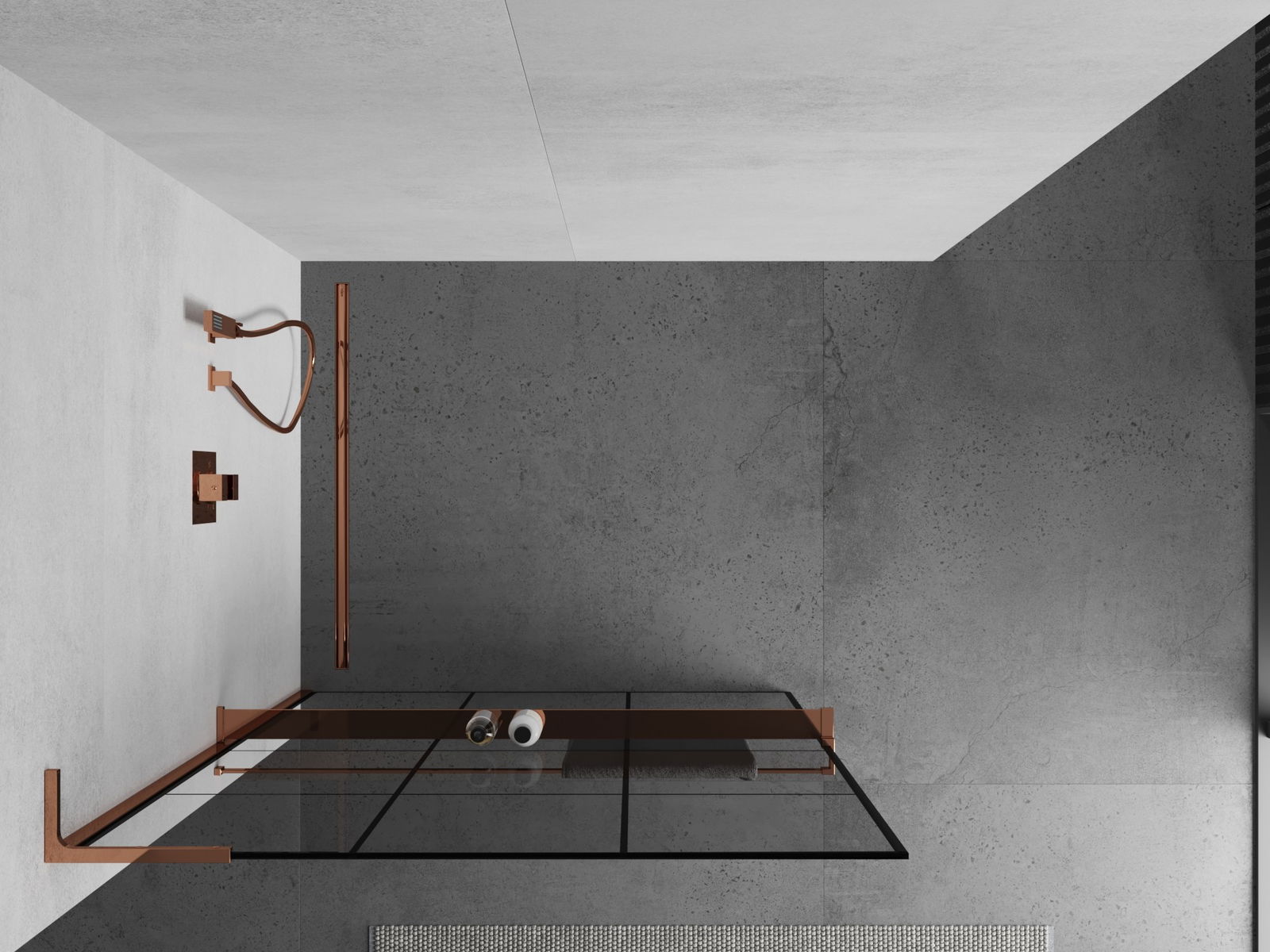 Mexen Kioto+ L zuhanyfal polccal Walk-in 120 x 200 cm, fekete rács, rózsaarany - 800-120-123-60-77