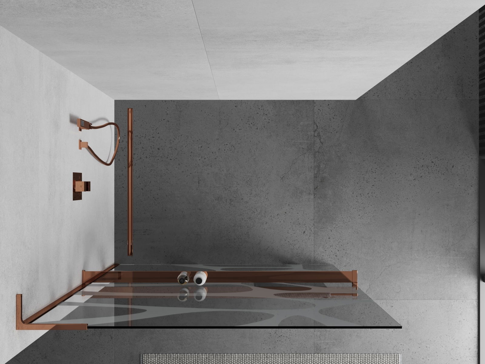 Mexen Kioto+ L zuhanyfal polccal Walk-in 110 x 200 cm, fehér hullám, rózsaszín arany - 800-110-123-60-97