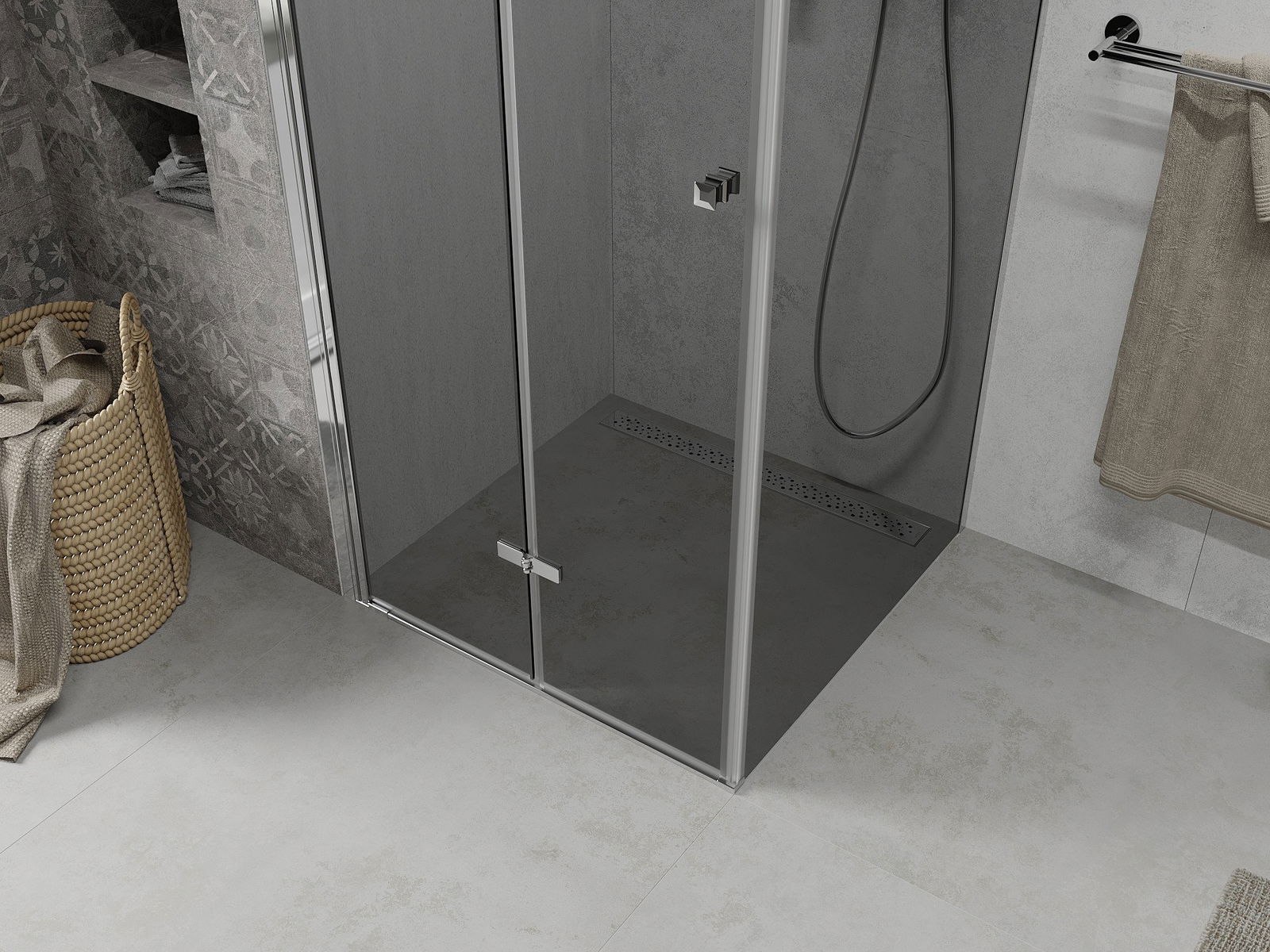 Az ajtó hajtogatásának képessége, mind kívül, mind belül, lehetővé teszi, hogy több helyet kapjon, ha nem használja a zuhanyt. Ez egy ideális megoldás kisebb fürdőszobákhoz, maximálisan a rendelkezésre álló felületet használva.