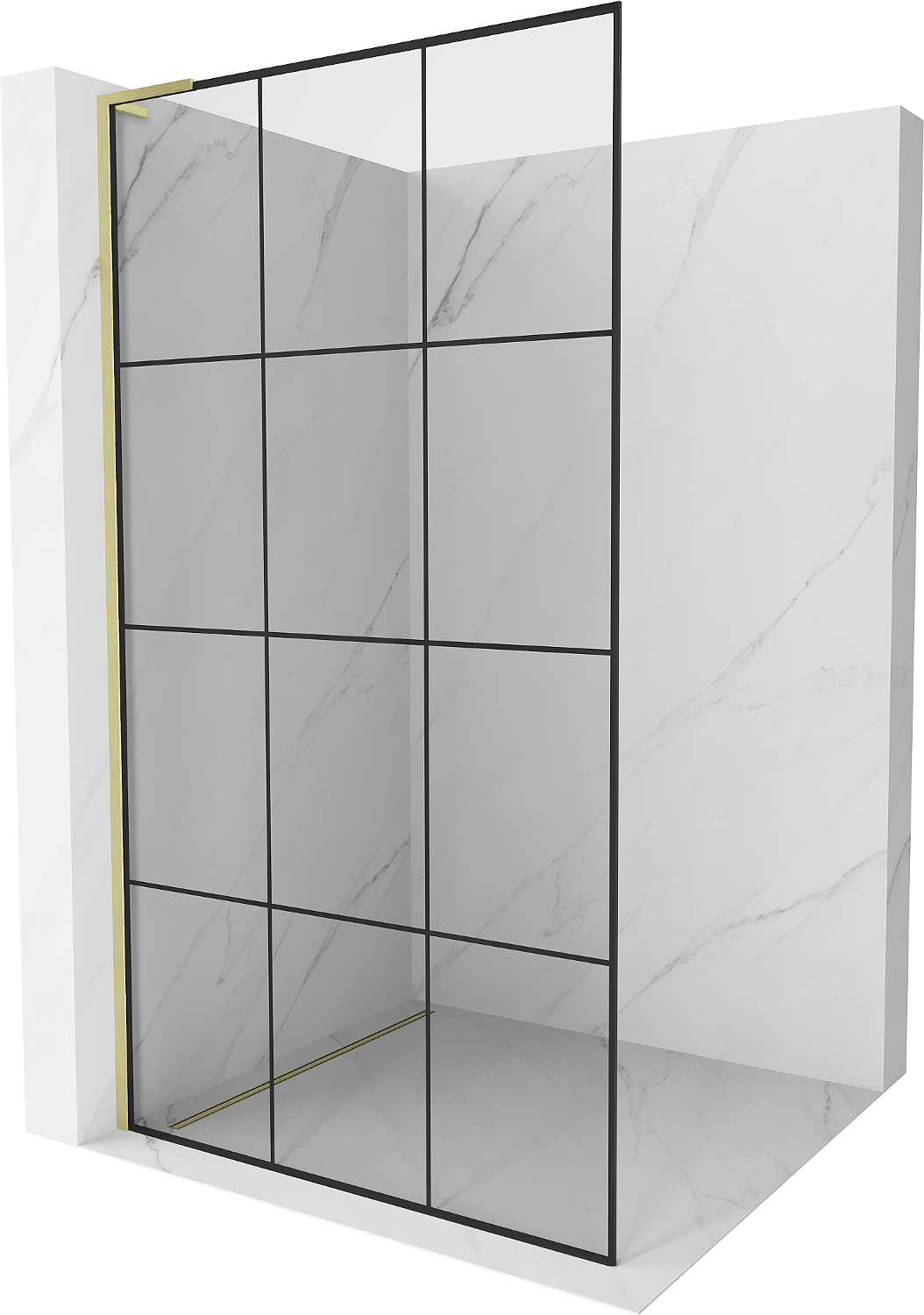 Mexen Kioto L zuhanyfal Walk-in 100 x 200 cm, fekete rács, arany szálcsiszolt - 800-100-103-55-77