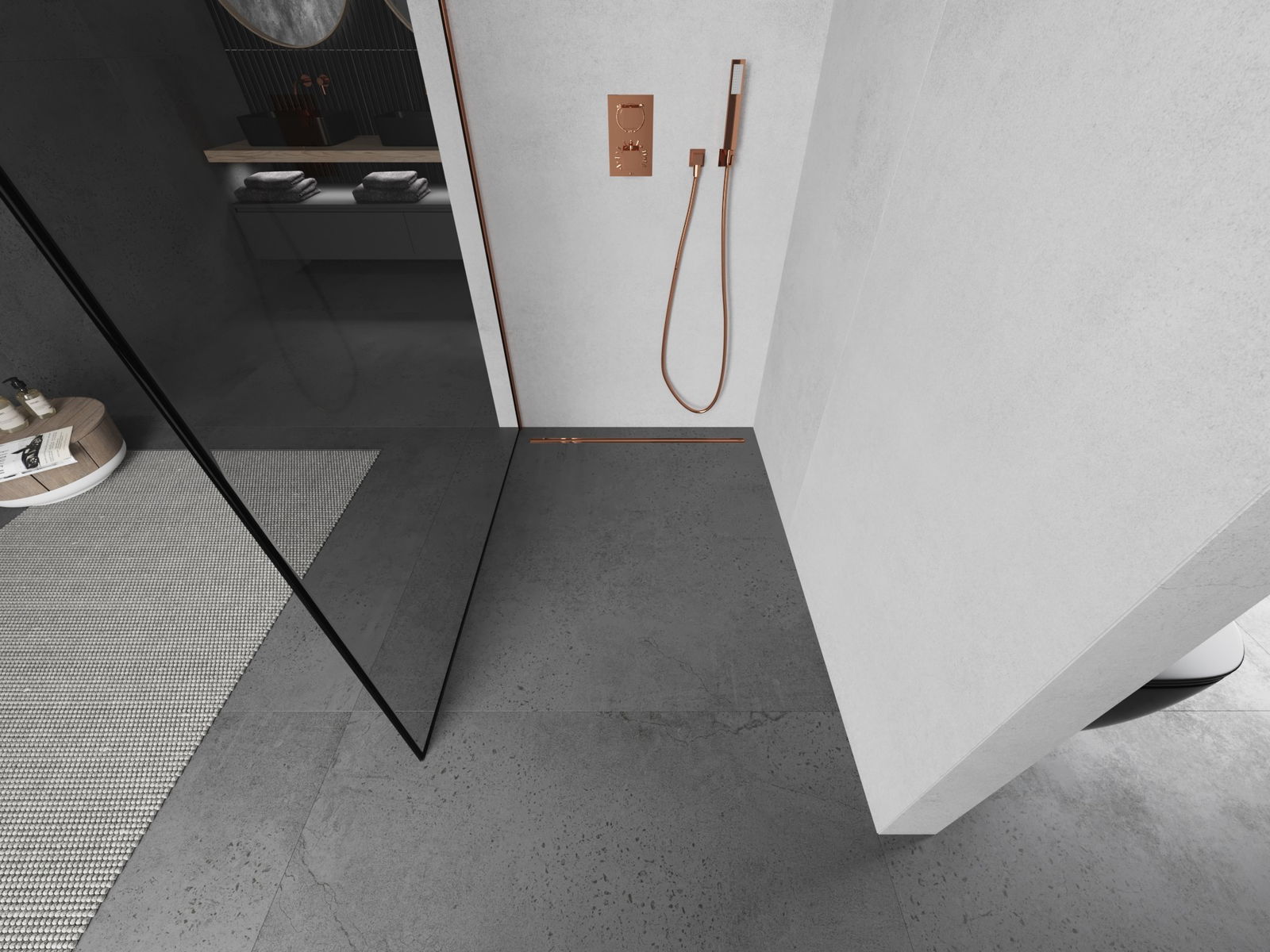 Mexen Kioto L zuhanyfal Walk-in 120 x 200 cm, fekete keret, rózsaarany - 800-120-103-60-70