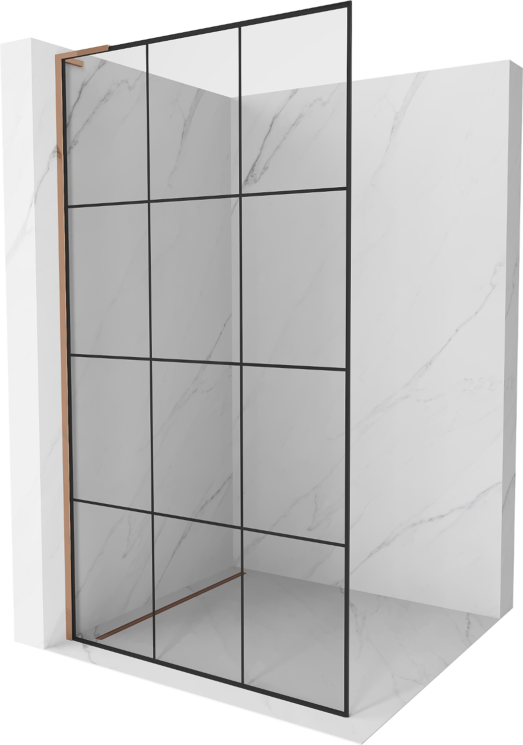 Mexen Kioto L zuhanyfal Walk-in 100 x 200 cm, fekete rács, rózsaarany - 800-100-103-60-77