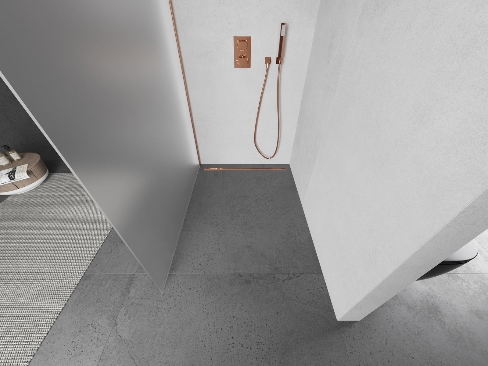 Mexen Kioto L zuhanyfal Walk-in 70 x 200 cm, fagyott, kefe réz - 800-070-103-65-30