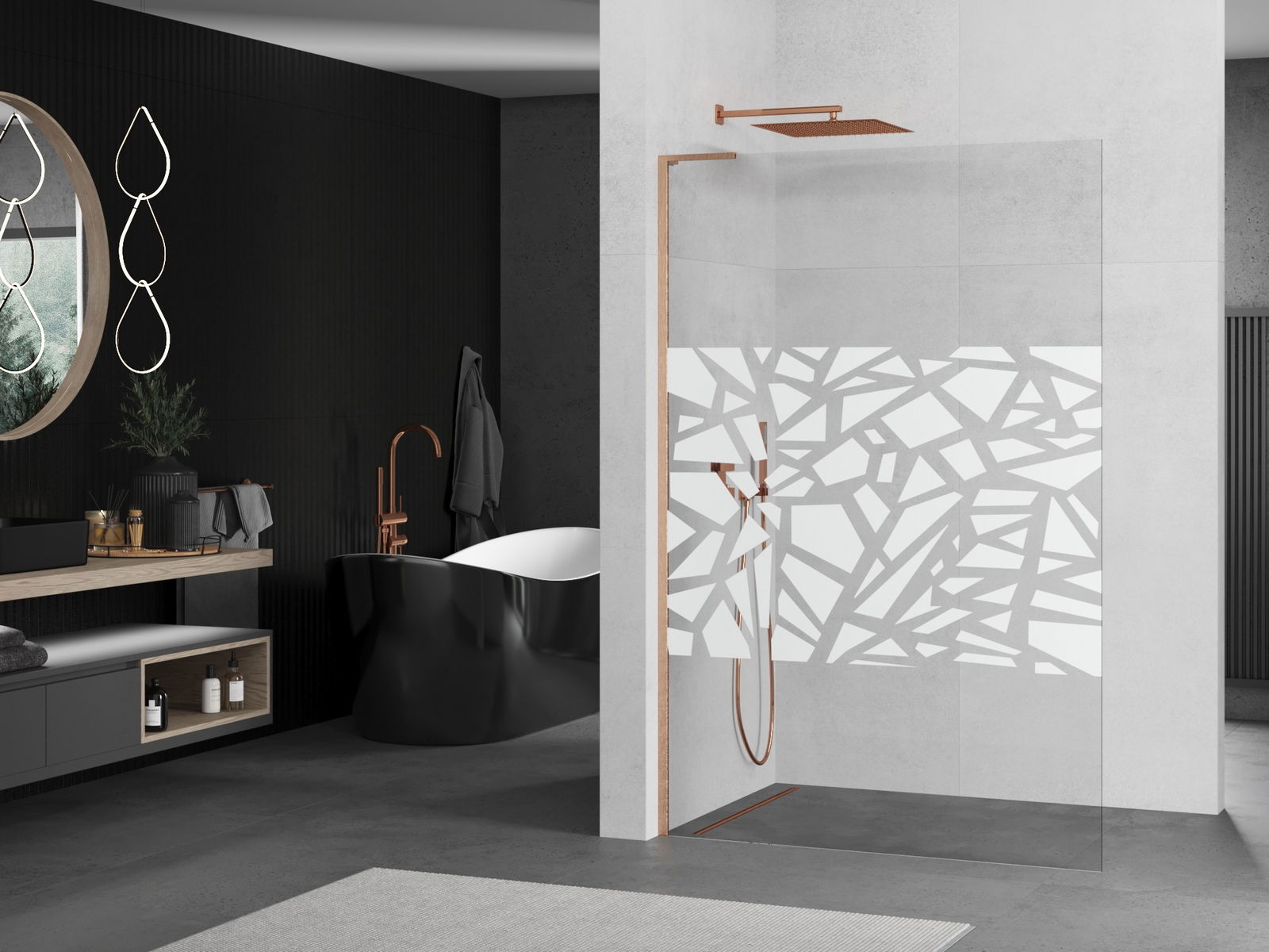 Mexen Kioto L Walk-in 80 x 200 cm zuhanyfal, fehér minta, csiszolt réz - 800-080-103-65-85