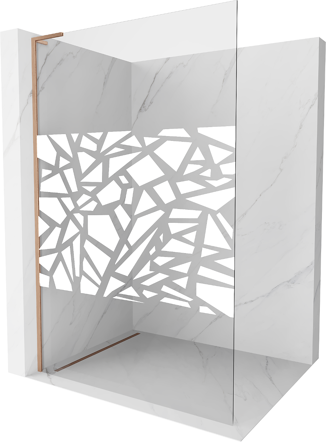 Mexen Kioto L zuhanyfal Walk-in 110 x 200 cm, fehér mintázat, csiszolt réz - 800-110-103-65-85