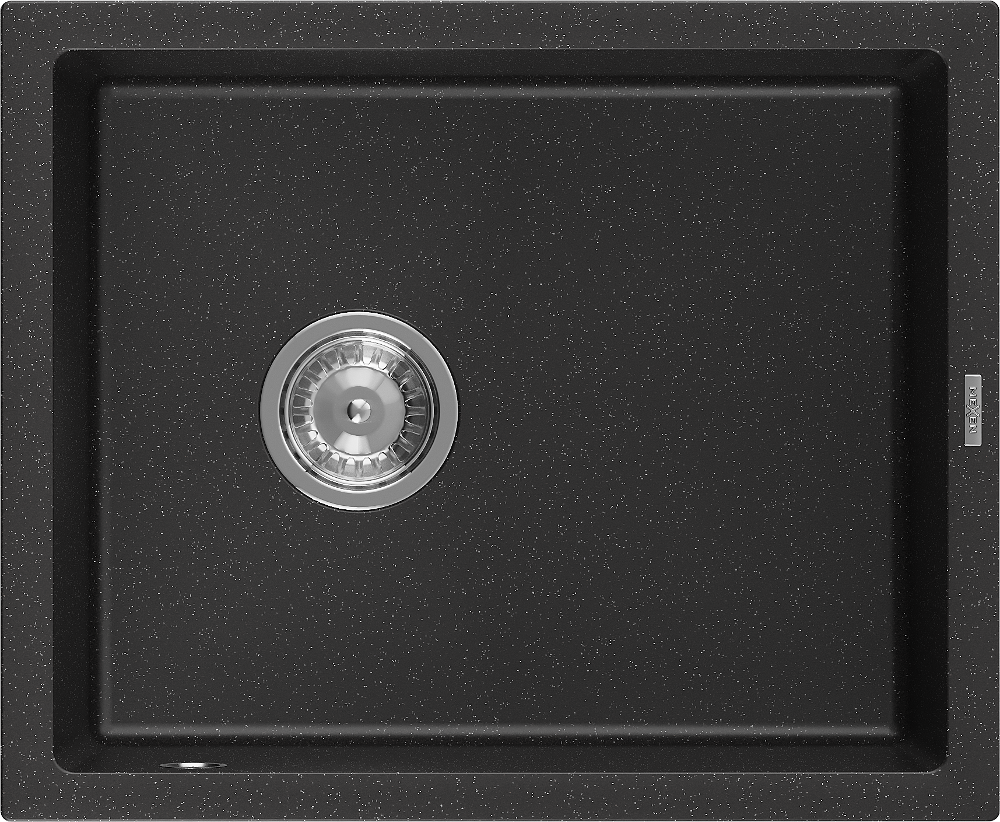 Mexen Pedro 1-medencés gránit mosogató 560 x 460 mm, fekete/ezüst metál, krómozott szifon - 6508561000-73
