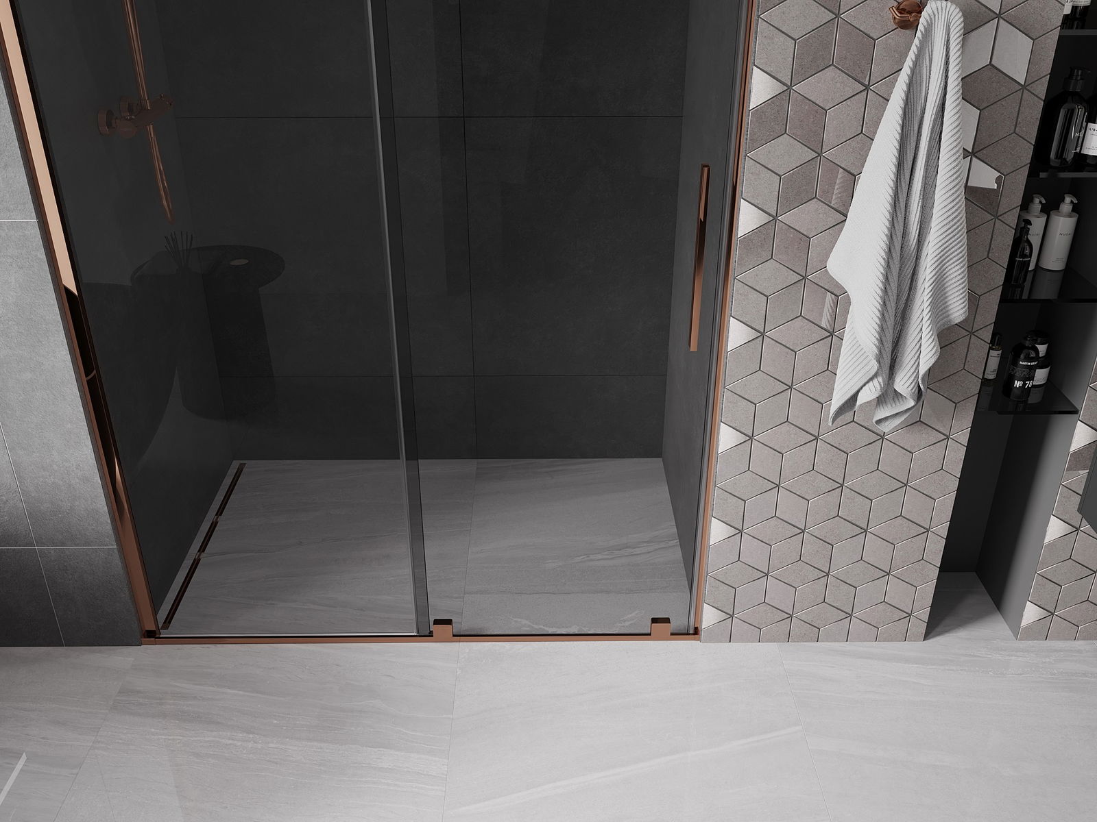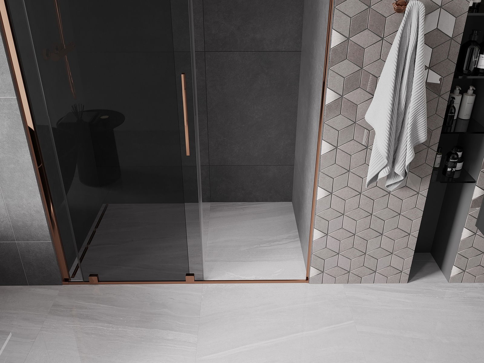 Mexen Velar tolóajtós zuhanykabin 160 cm, grafit, rózsaarany - 871-160-000-41-60