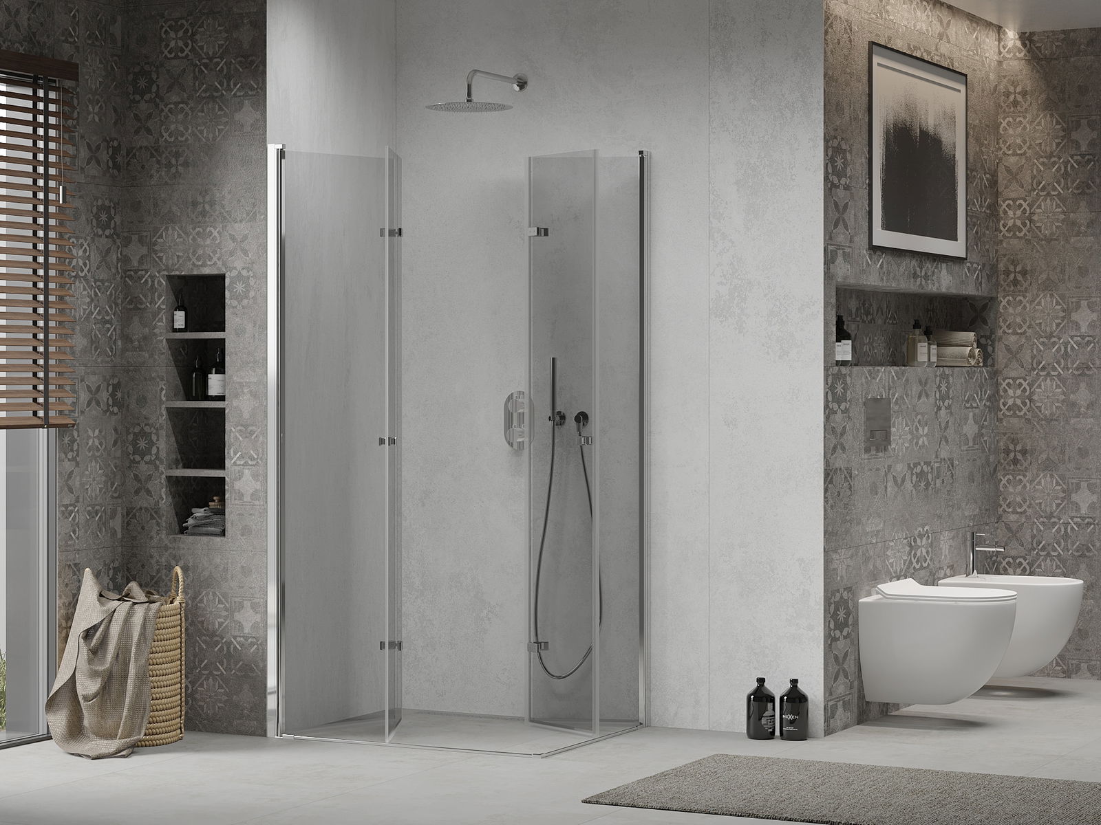 Az Ön igényeitől függően a terméket mind a zuhany tálcára, mind a padlóra lehet felszerelni. Az univerzális rögzítési módszer lehetővé teszi a termék hozzáigazítását a különféle fürdőszobákhoz és a hely konfigurálását.