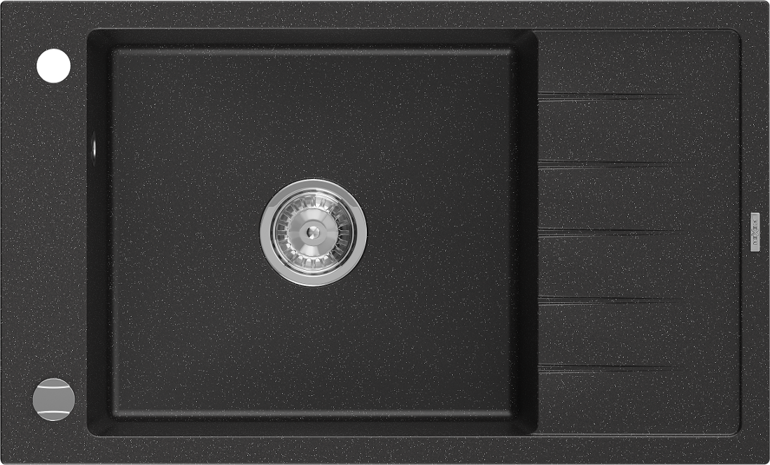 Mexen Elias gránit mosogató 1-medencés csepegtetővel 795 x 480 mm, fekete/ezüst metál, króm szifon - 6511791005-73