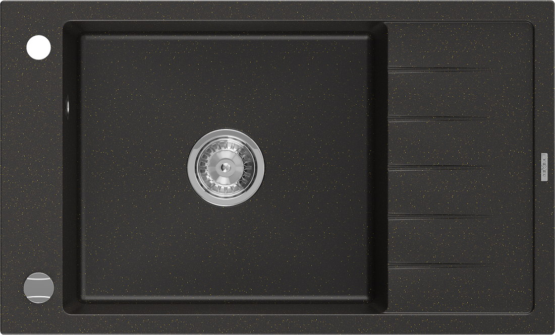 Mexen Elias 1 rekeszes gránit mosogatócserép csepegtetővel, 795 x 480 mm, fekete/arany metál, króm szifon - 6511791005-75