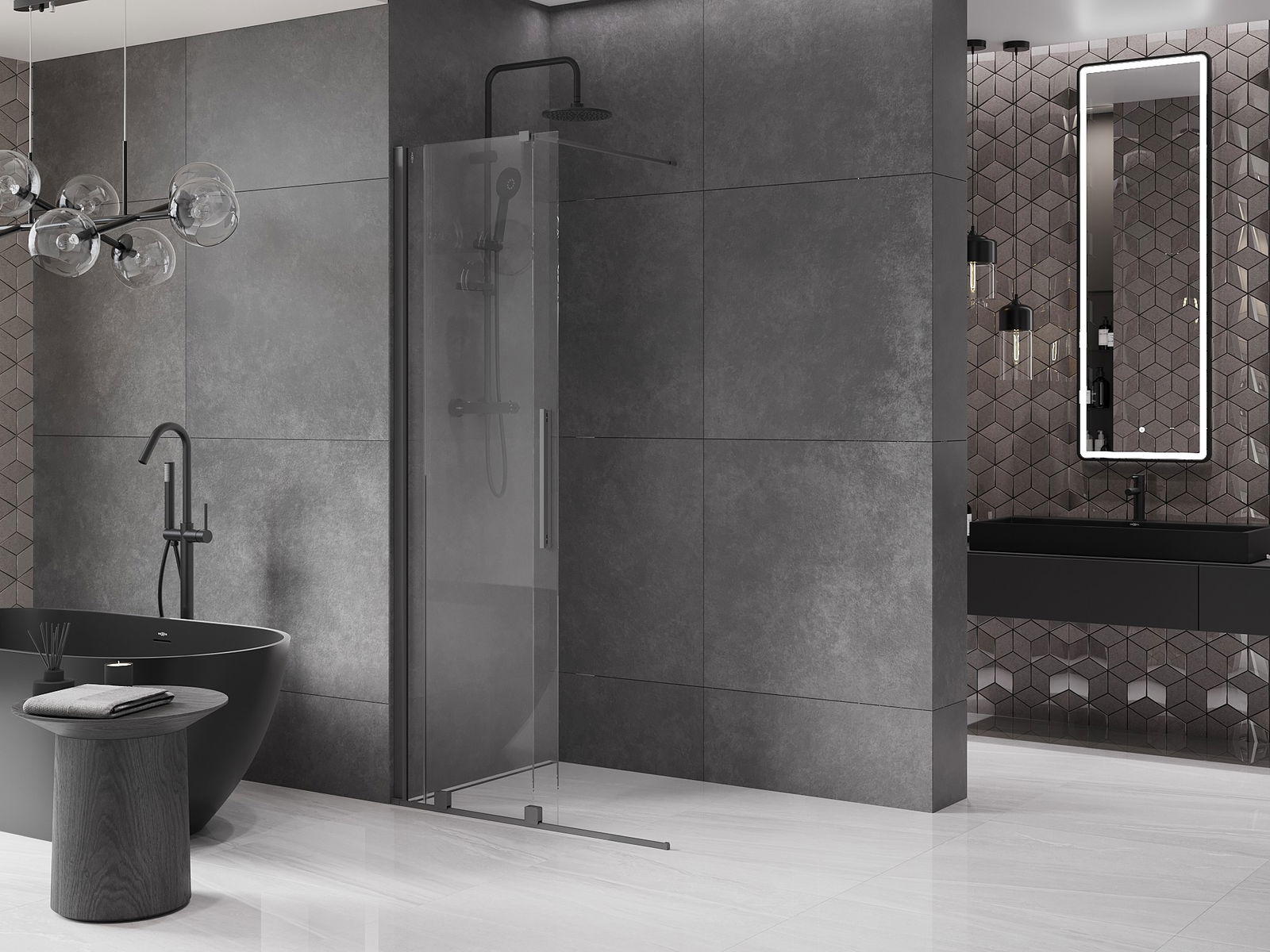 Mexen Velar Tolható zuhanyfal Walk-in 90 x 200 cm, átlátszó 8 mm, sötétszürke fém - 871-090-000-03-95