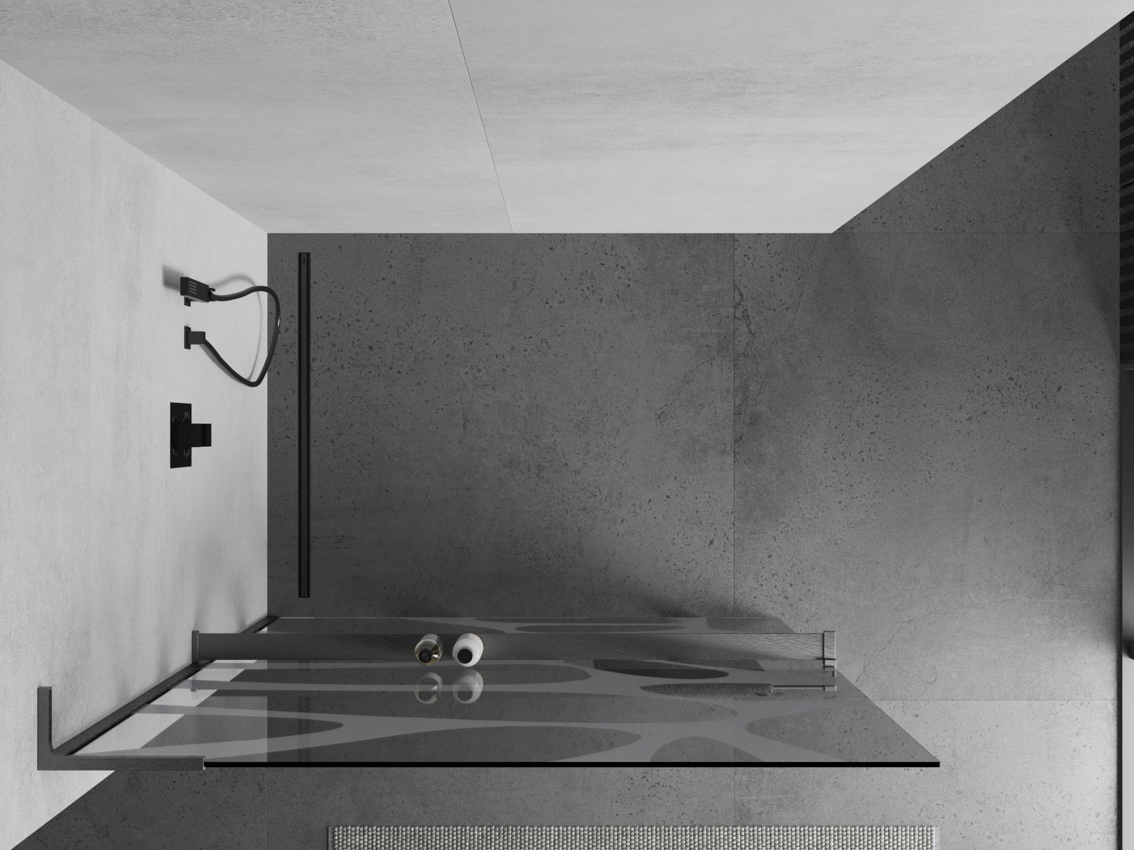 Mexen Kioto+ L zuhanyzófal polccal Walk-in 70 x 200 cm, fehér hullám, gun gray csiszolt - 800-070-123-66-97