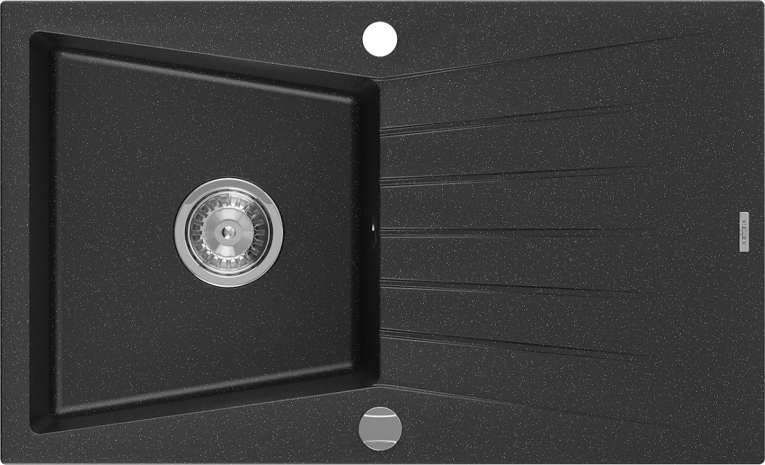 Mexen Cesar gránit mosogató 1-medencés csepegtetővel 775 x 470 mm, fekete/ezüst metál, krómszifon - 6514771010-73