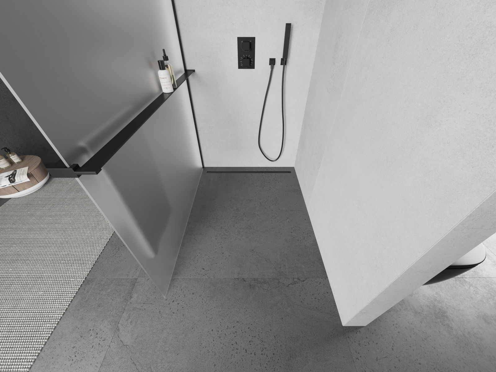 Mexen Kioto+ L zuhanyfal polccal Walk-in 120 x 200 cm, fagyott, fekete - 800-120-123-70-30