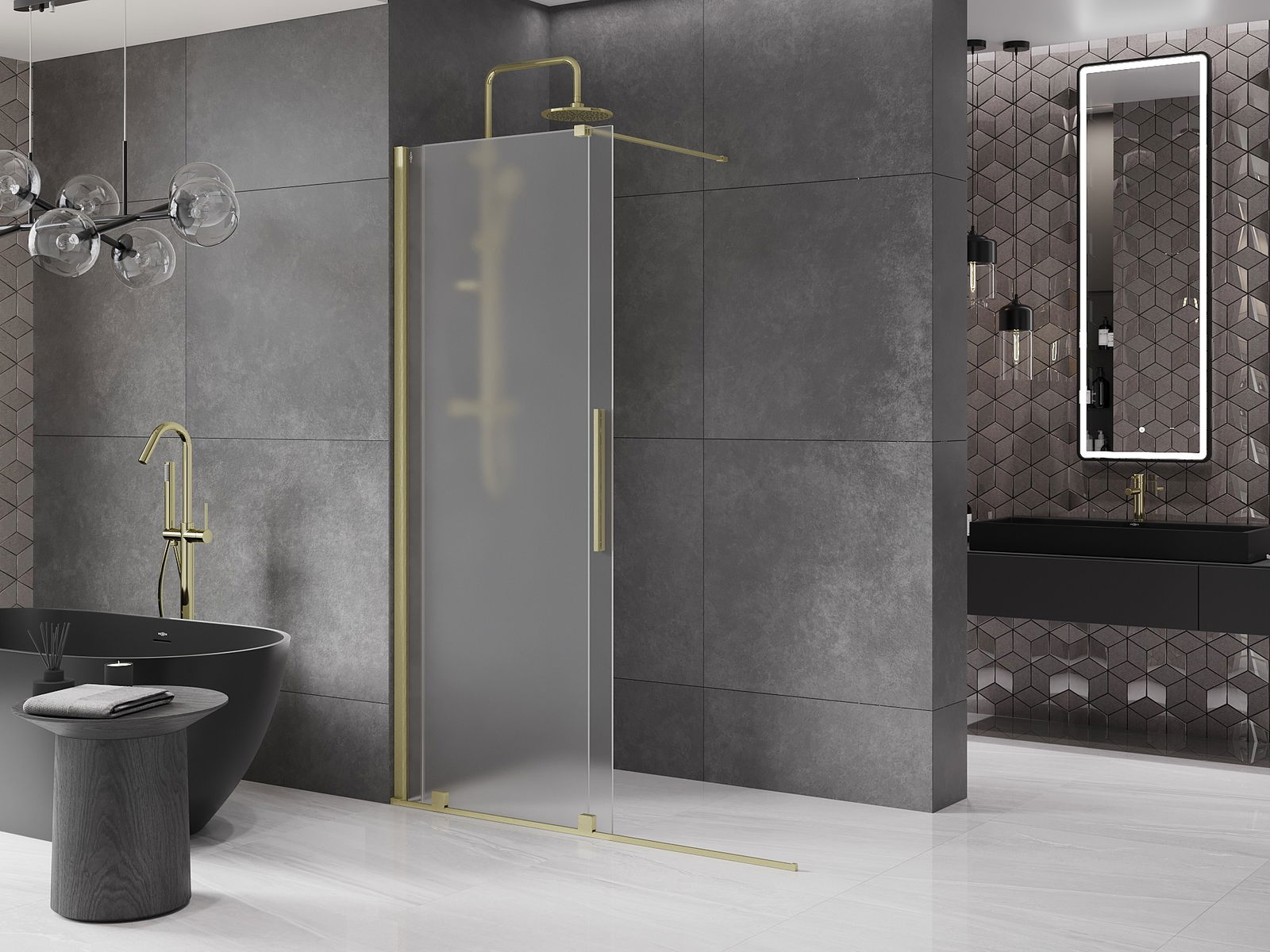 Mexen Velar toló zuhanyfal Walk-in 140 x 200 cm, 8 mm fagyott, arany kefe - 871-140-000-33-55