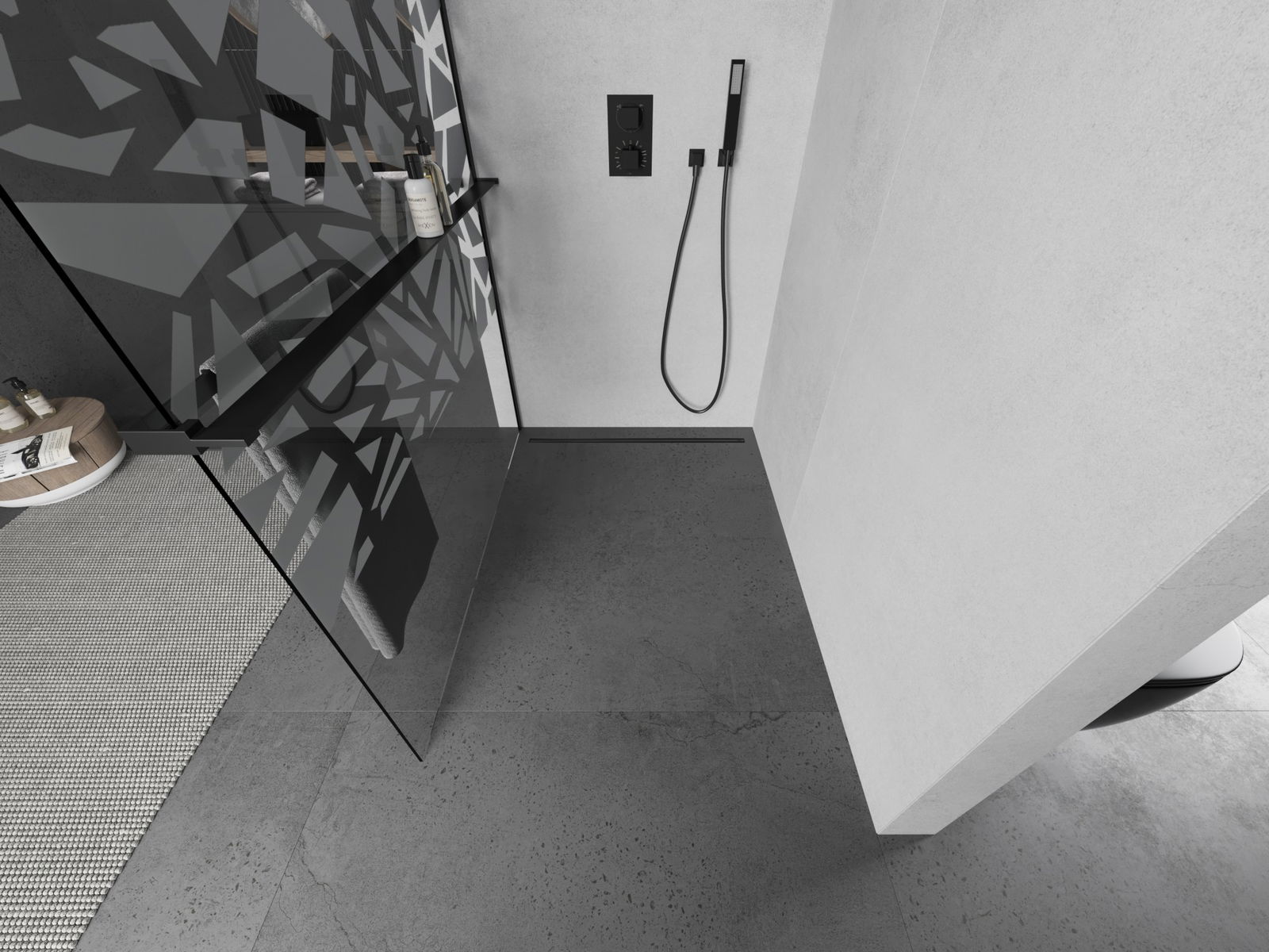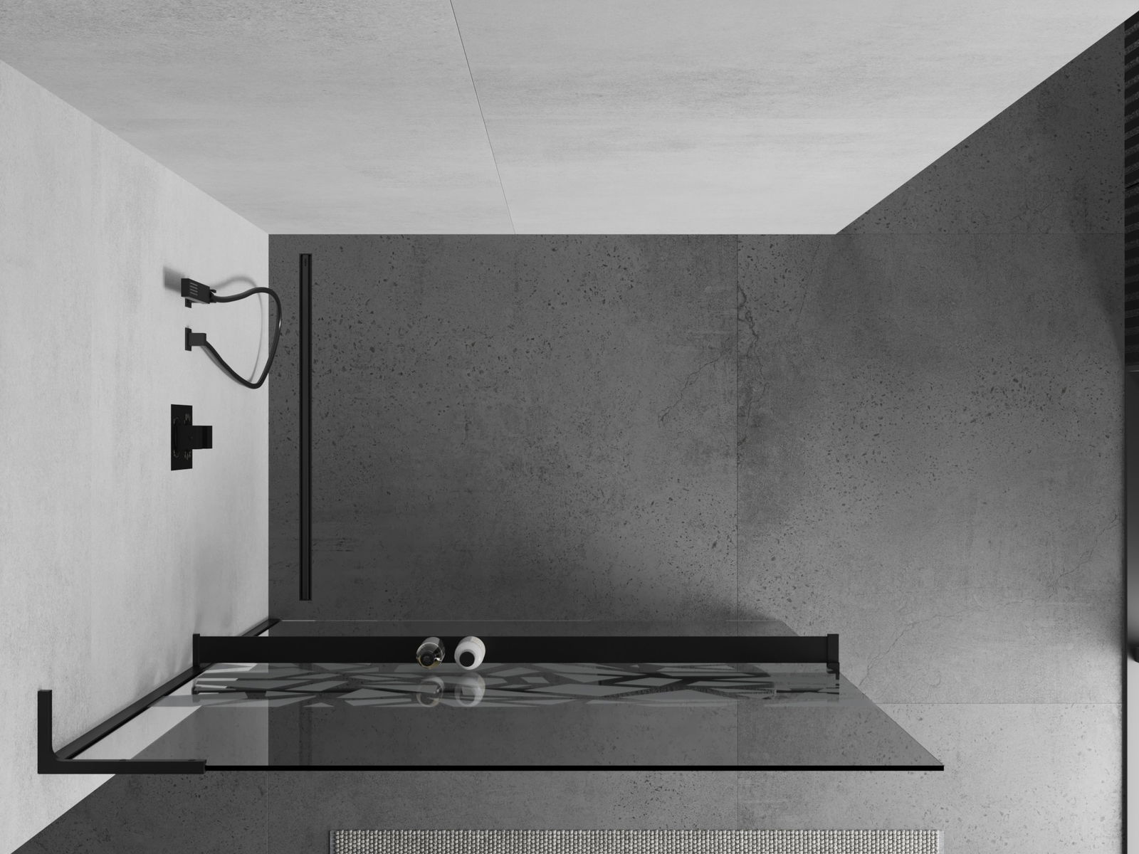 Mexen Kioto+ L zuhanyfal polccal Walk-in 100 x 200 cm, fehér minta, fekete - 800-100-123-70-85