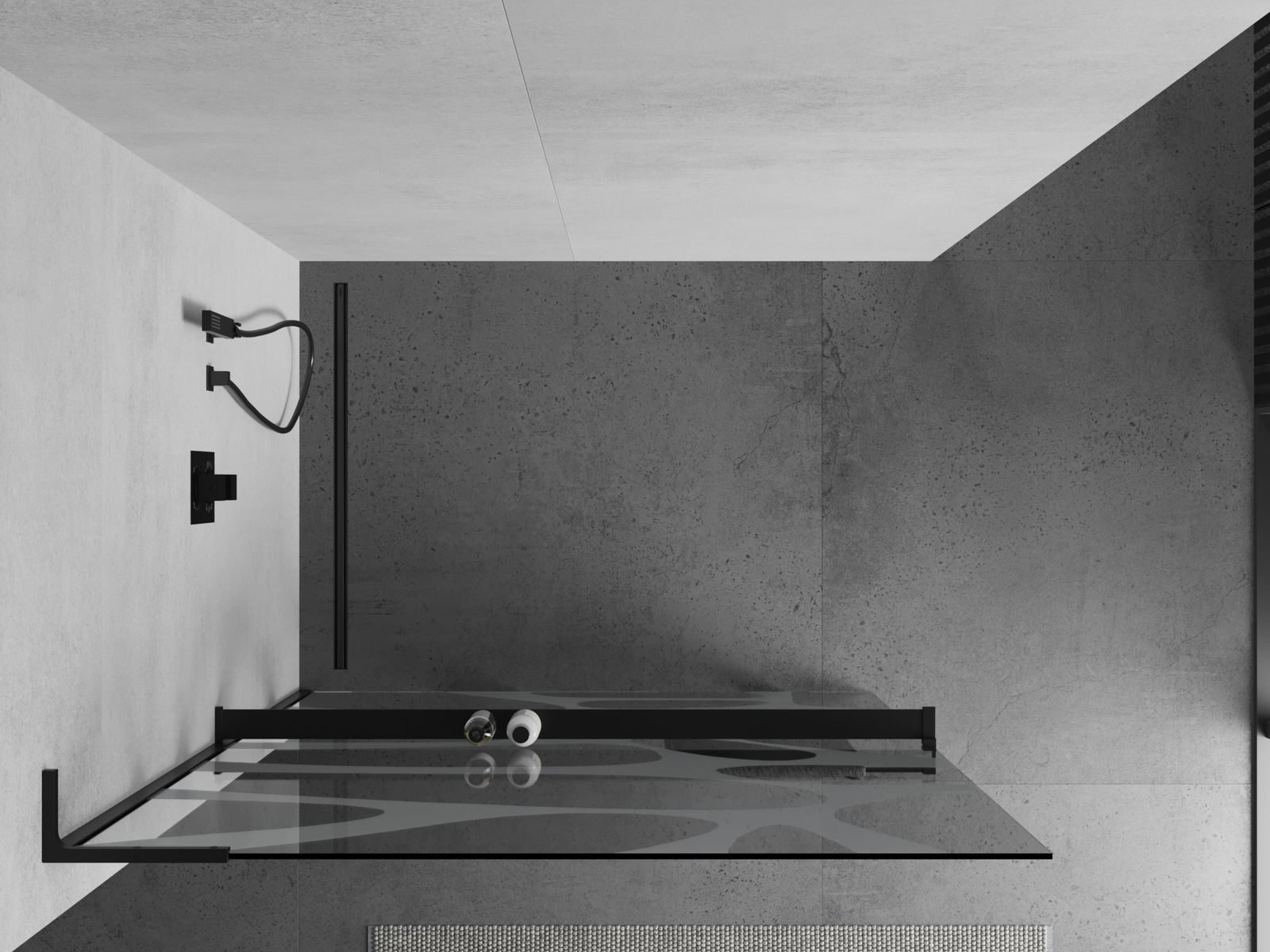 Mexen Kioto+ L zuhanyfal polccal Walk-in 70 x 200 cm, fehér hullám, fekete - 800-070-123-70-97