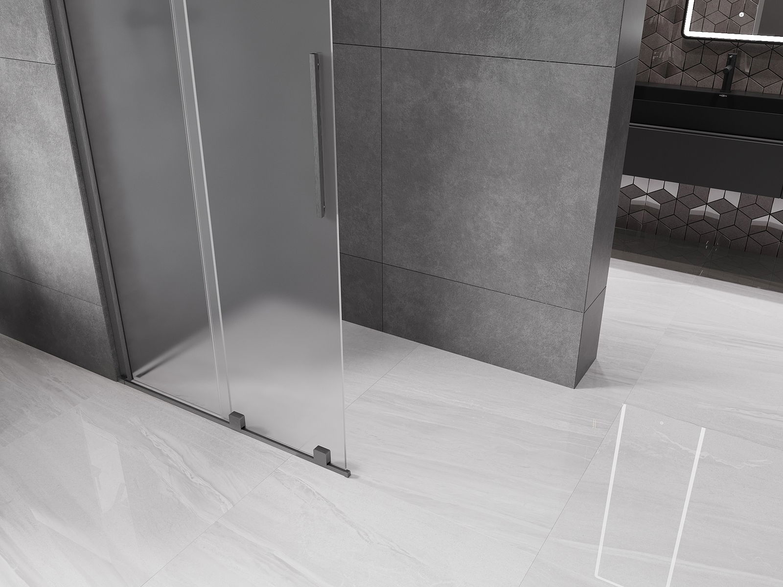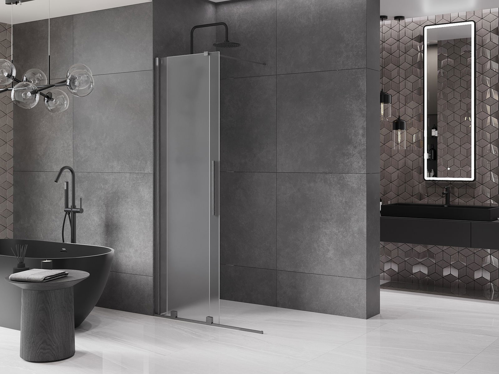 Mexen Velar zuhanyfal tolóajtós Walk-in 70 x 200 cm, 8 mm-es fagyott, gun gray kefélt - 871-070-000-33-66