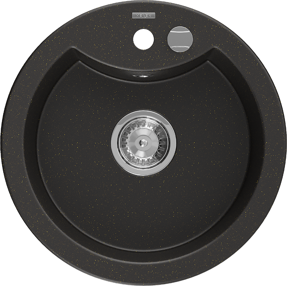Mexen Diego gránit mosogató 1-medencés 488 x 480 mm, fekete/arany metál, króm szifon - 6512481000-75