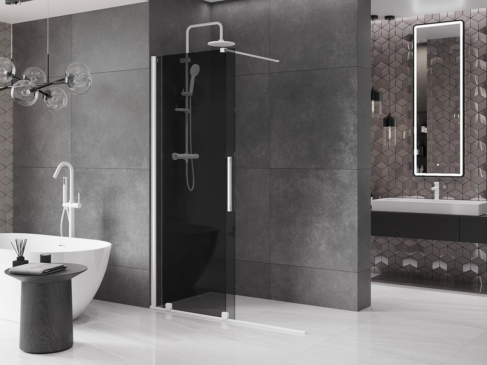 Mexen Velar toló üveg zuhanyfal Walk-in 150 x 200 cm, grafit 8 mm, fehér - 871-150-000-43-20