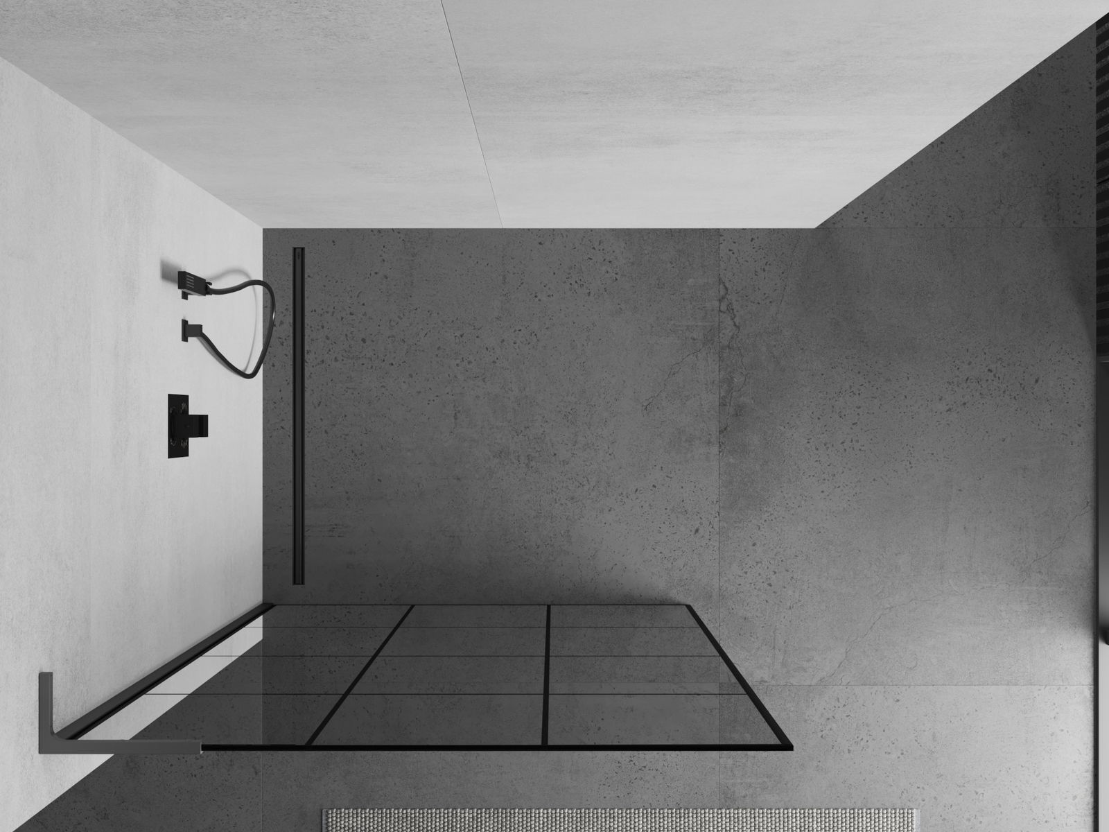 Mexen Kioto L zuhanyfal Walk-in 100 x 200 cm, fekete rács, gun metal - 800-100-103-95-77