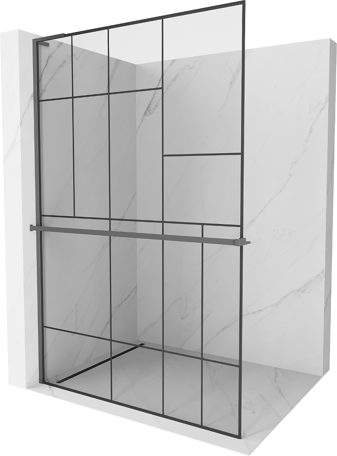 Mexen Kioto+ L zuhanyfal polccal Walk-in 120 x 200 cm, fekete minta, gun metal - 800-120-123-95-78
