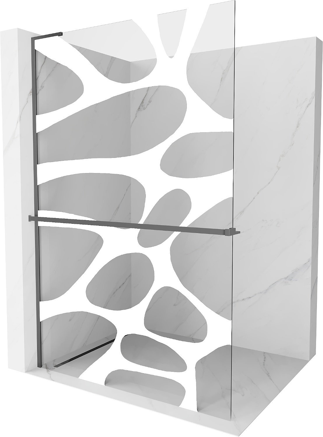 Mexen Kioto+ L zuhanyfal polccal Walk-in 120 x 200 cm, fehér hullám, gun metal - 800-120-123-95-97