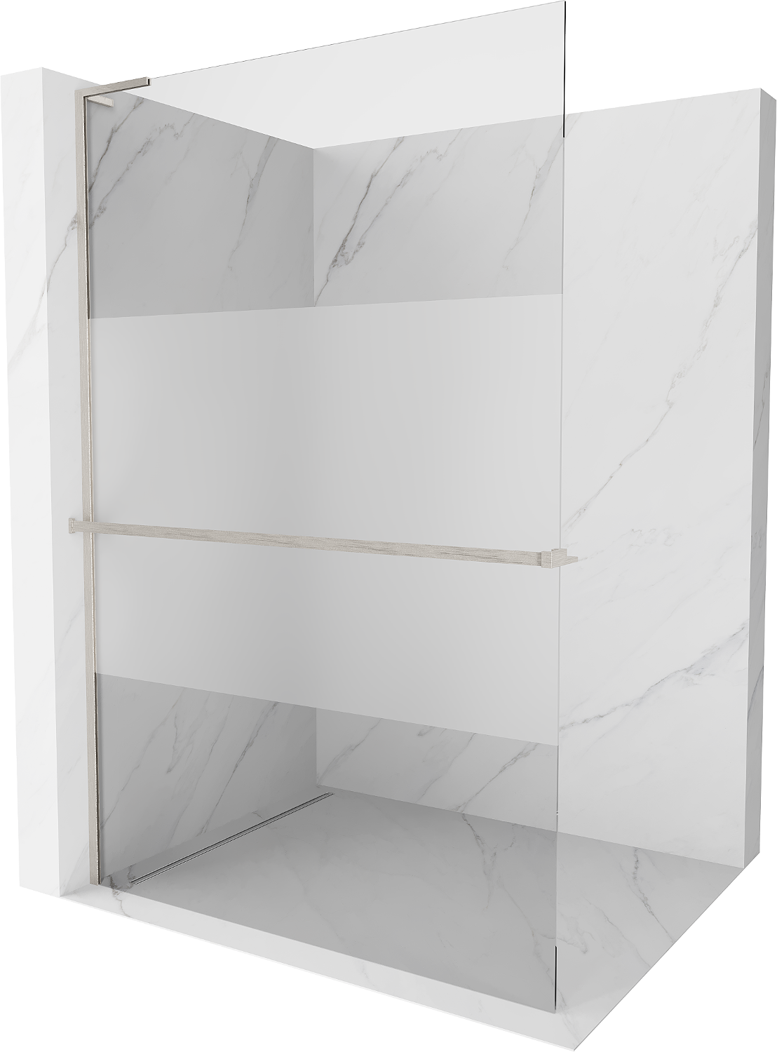 Mexen Kioto+ L Walk-in zuhanyfal polccal 80 x 200 cm, átlátszó/fagyott, kefélt nikkel - 800-080-123-97-35