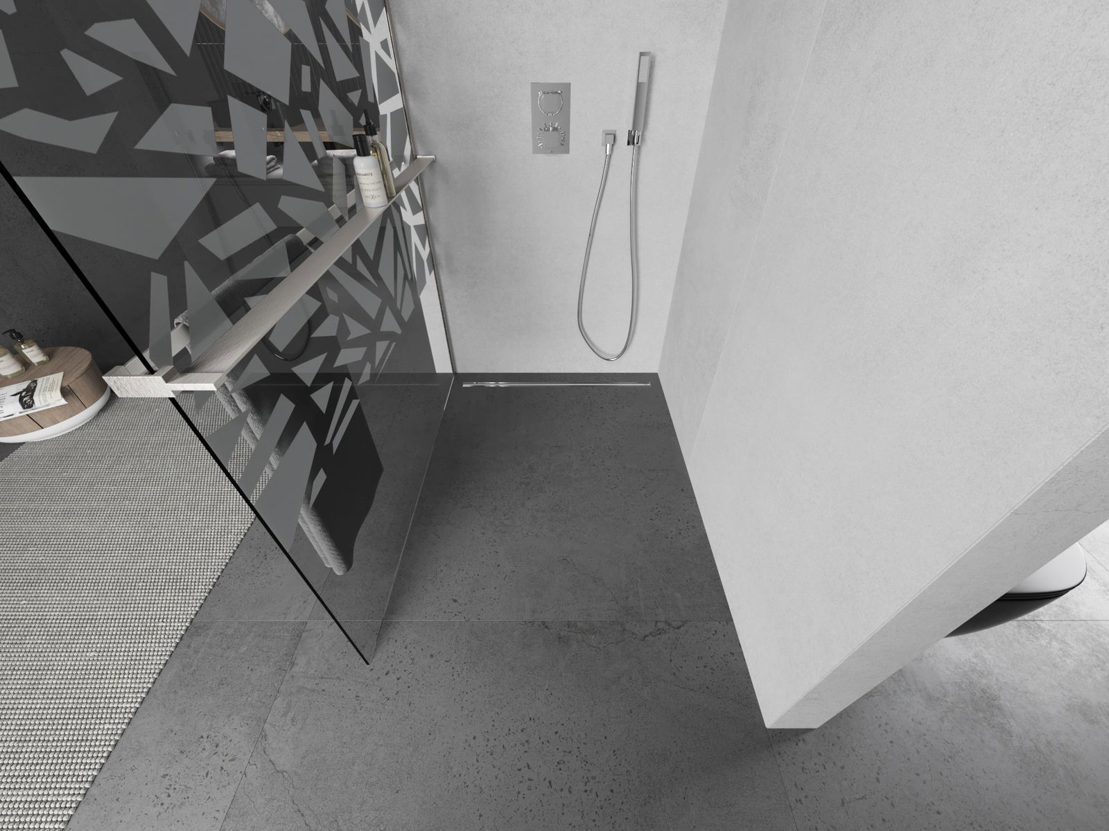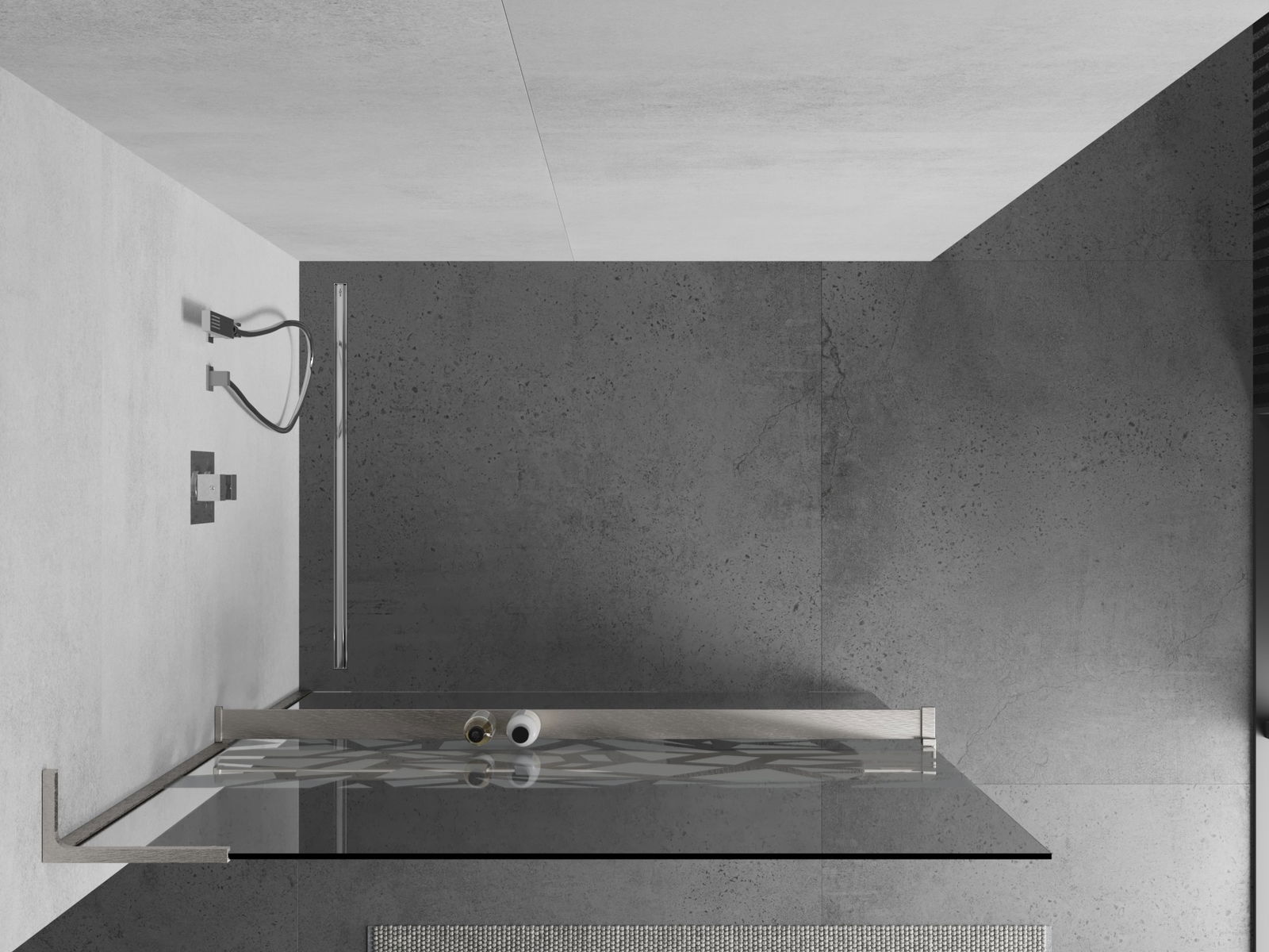 Mexen Kioto+ L zuhanyfal polccal, Walk-in 80 x 200 cm, fehér minta, kefefényes nikkel - 800-080-123-97-85