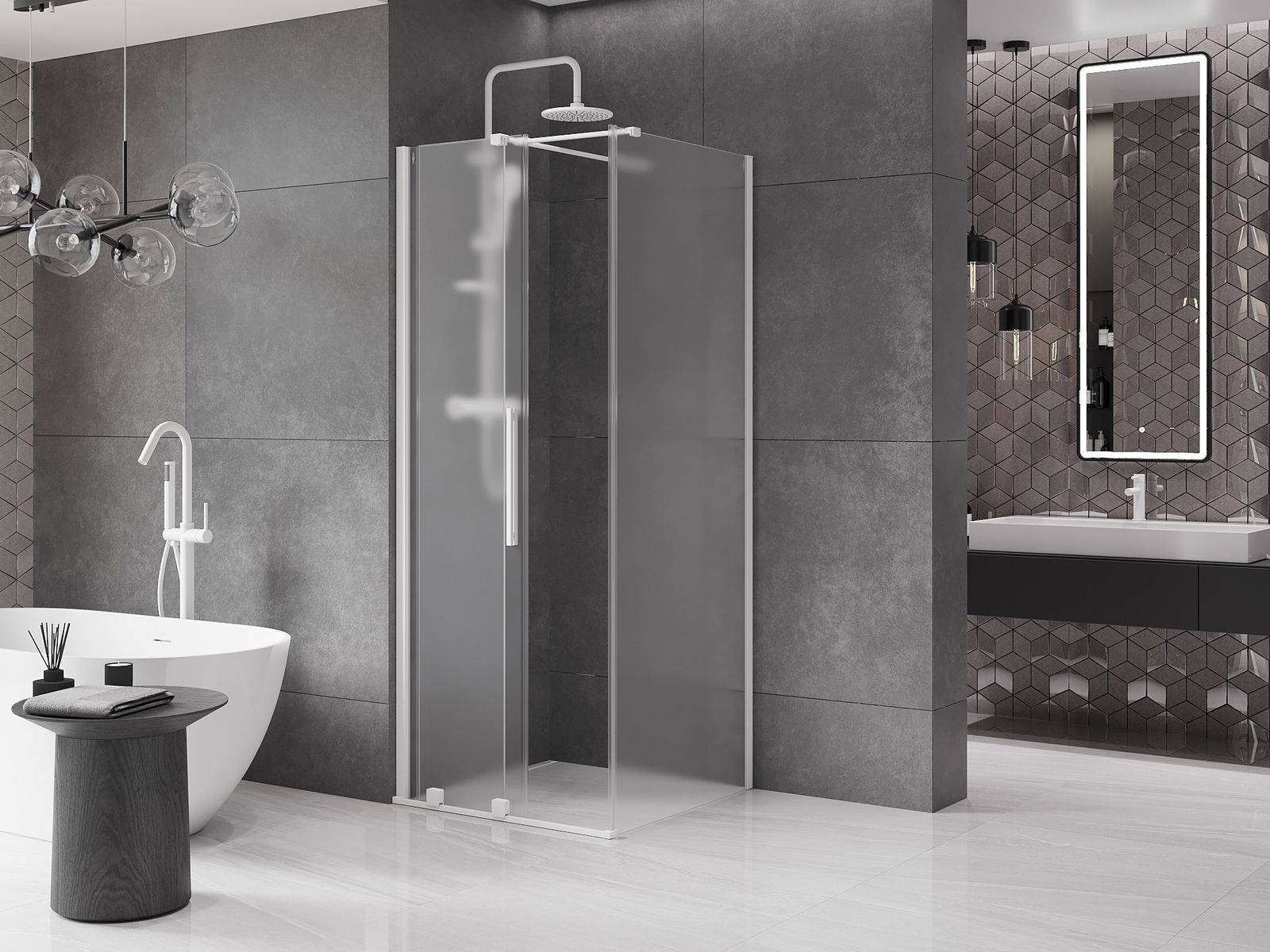 Mexen Velar tolóajtós zuhanykabin 110 x 110 cm, matt, fehér - 871-110-110-31-20