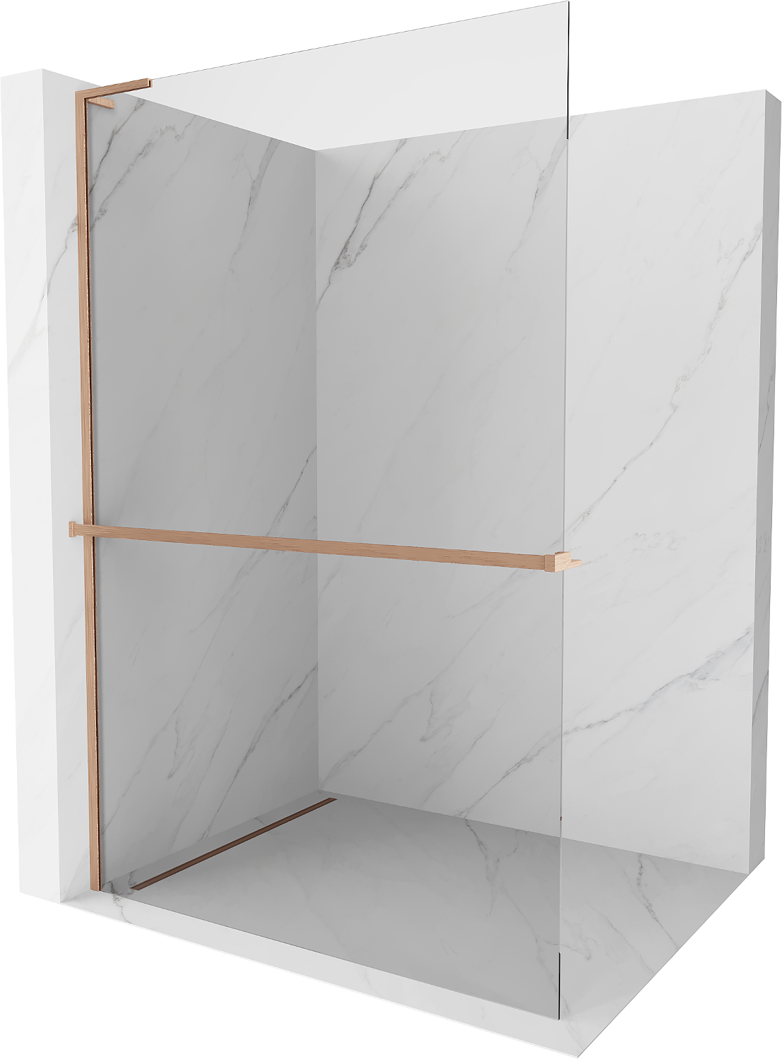 Mexen Kioto+ L zuhanyfal polccal Walk-in 50 x 200 cm, átlátszó, szálcsiszolt réz - 800-050-123-65-00