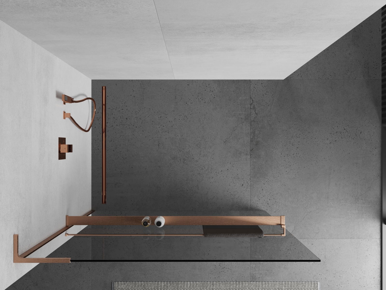 Mexen Kioto+ L zuhanyfal polccal Walk-in 75 x 200 cm, átlátszó, kefélt réz - 800-075-123-65-00
