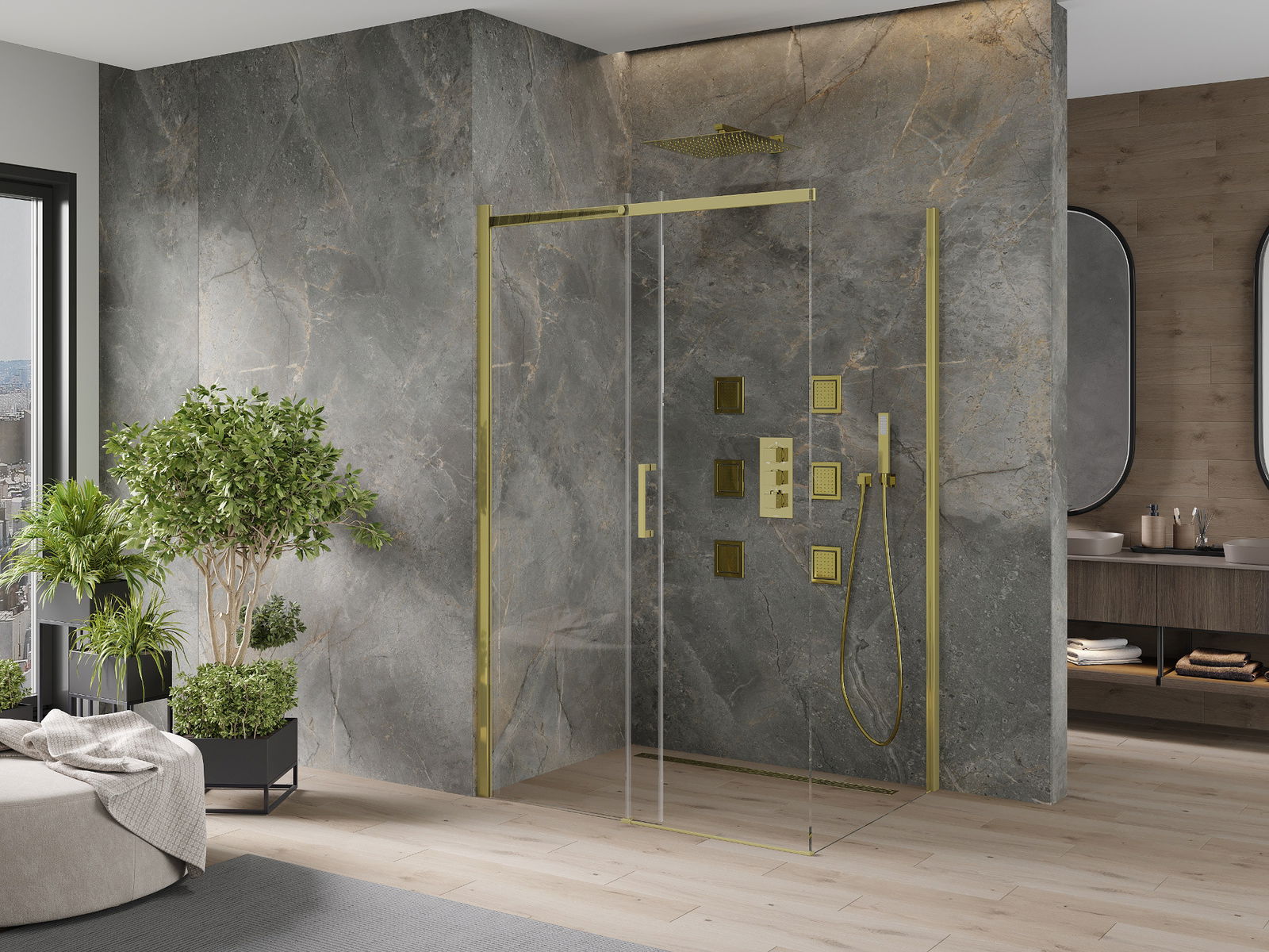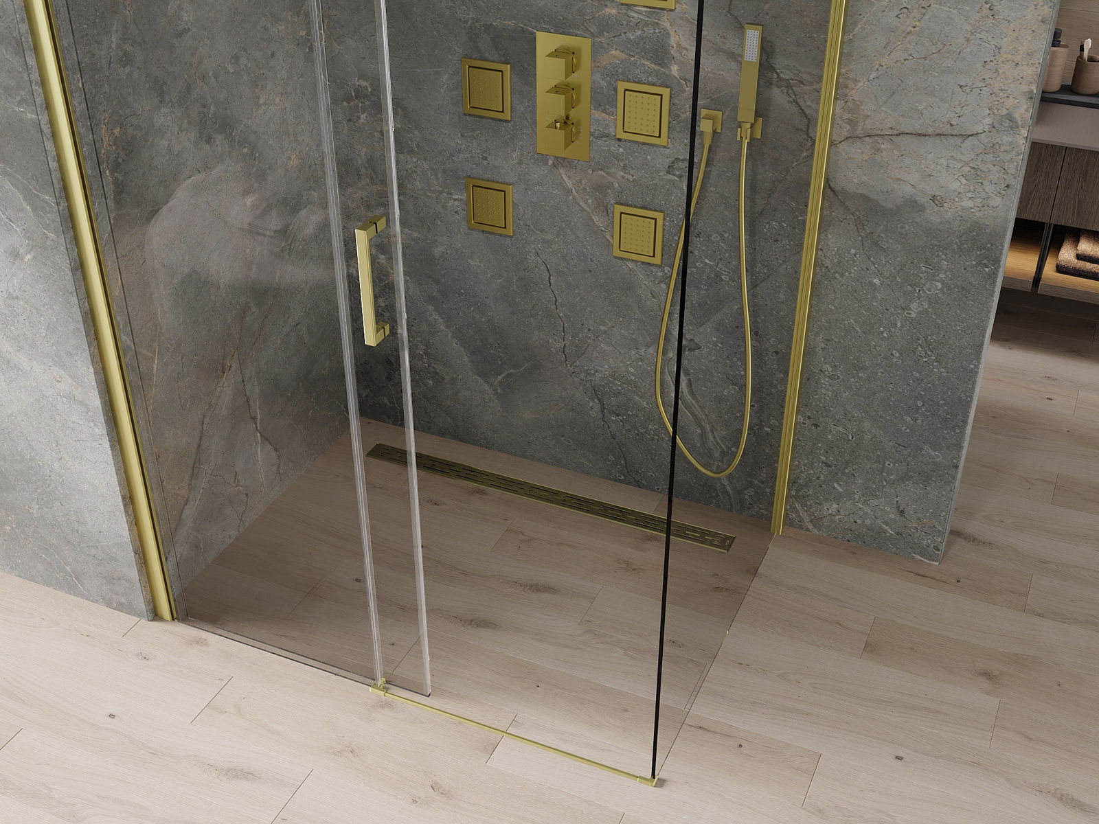 Mexen Omega 140 x 90 cm-es tolóajtós zuhanykabin, átlátszó, arany - 825-140-090-50-00