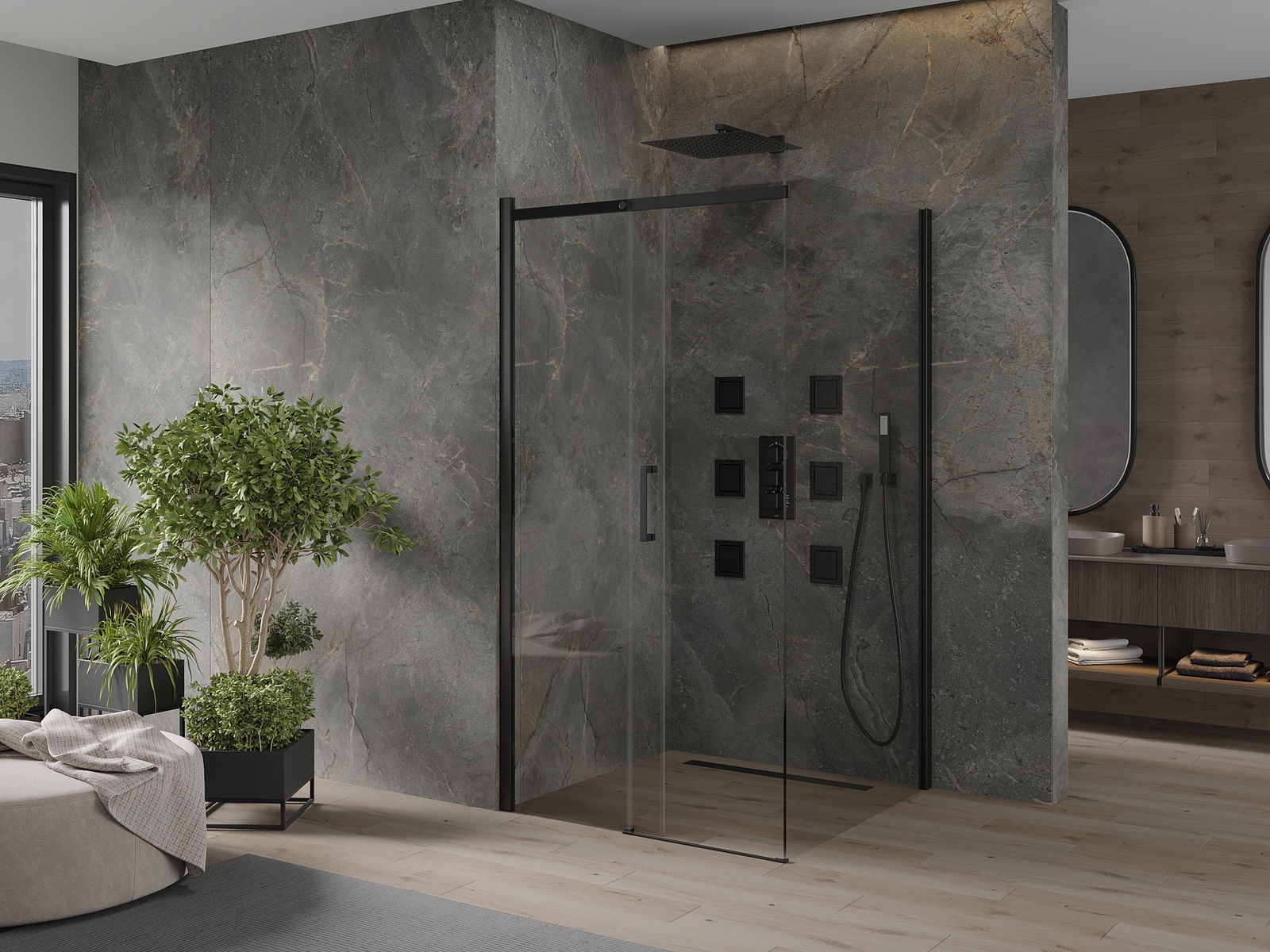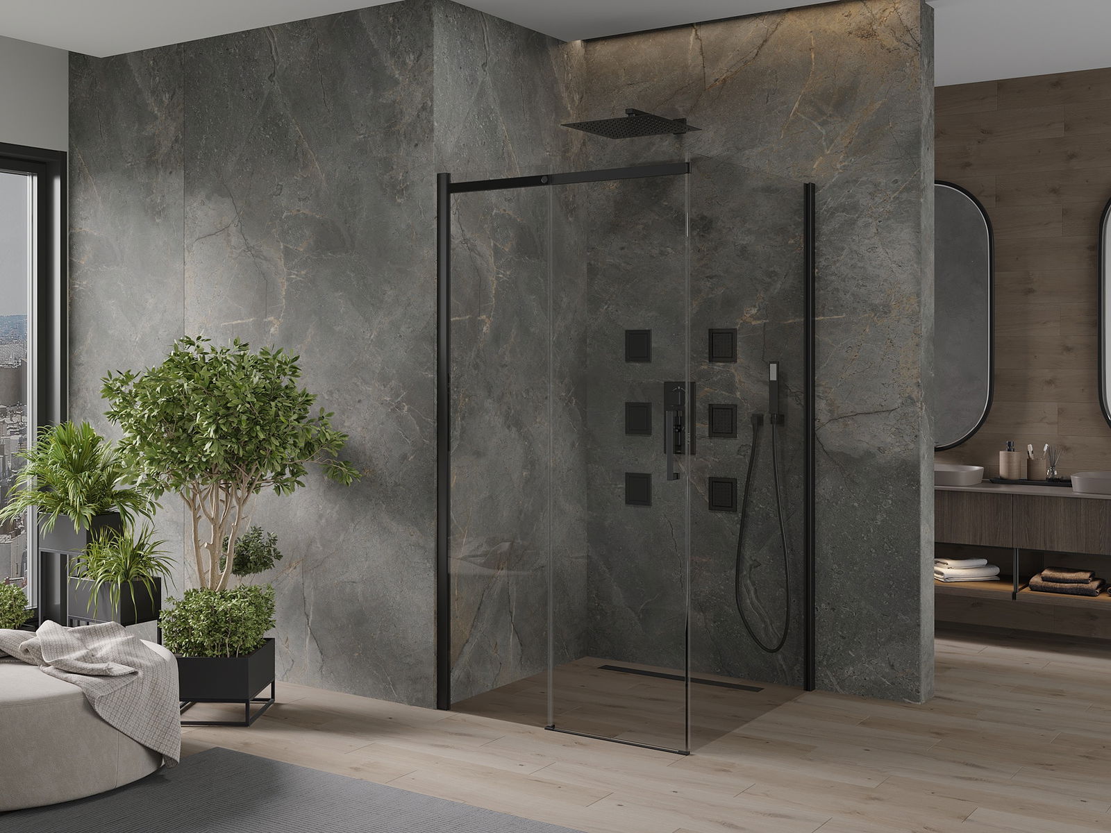 Mexen Omega eltolható zuhanykabin 100 x 100 cm, átlátszó, fekete - 825-100-100-70-00