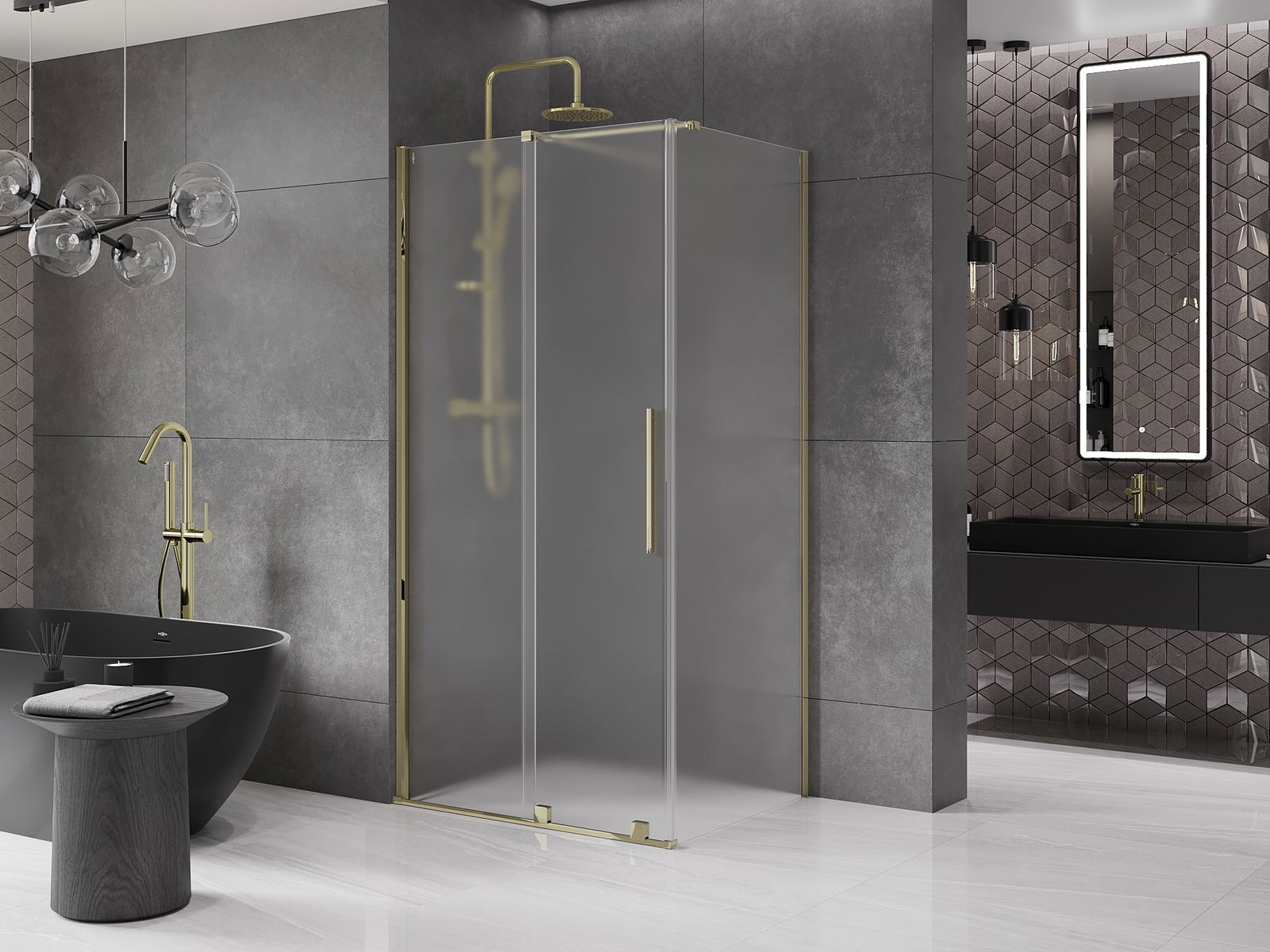 Mexen Velar tolóajtós zuhanykabin 110 x 90 cm, jégvirágos, arany - 871-110-090-31-50