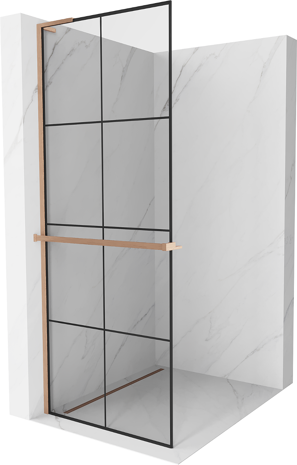 Mexen Kioto+ L zuhanyfal polccal Walk-in 70 x 200 cm, fekete rács, kefe miedź - 800-070-123-65-77