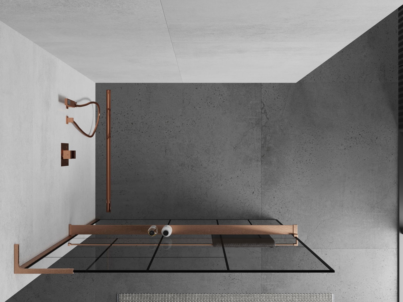 Mexen Kioto+ L zuhanyfal polccal Walk-in 120 x 200 cm, fekete minta, kefélt réz - 800-120-123-65-78