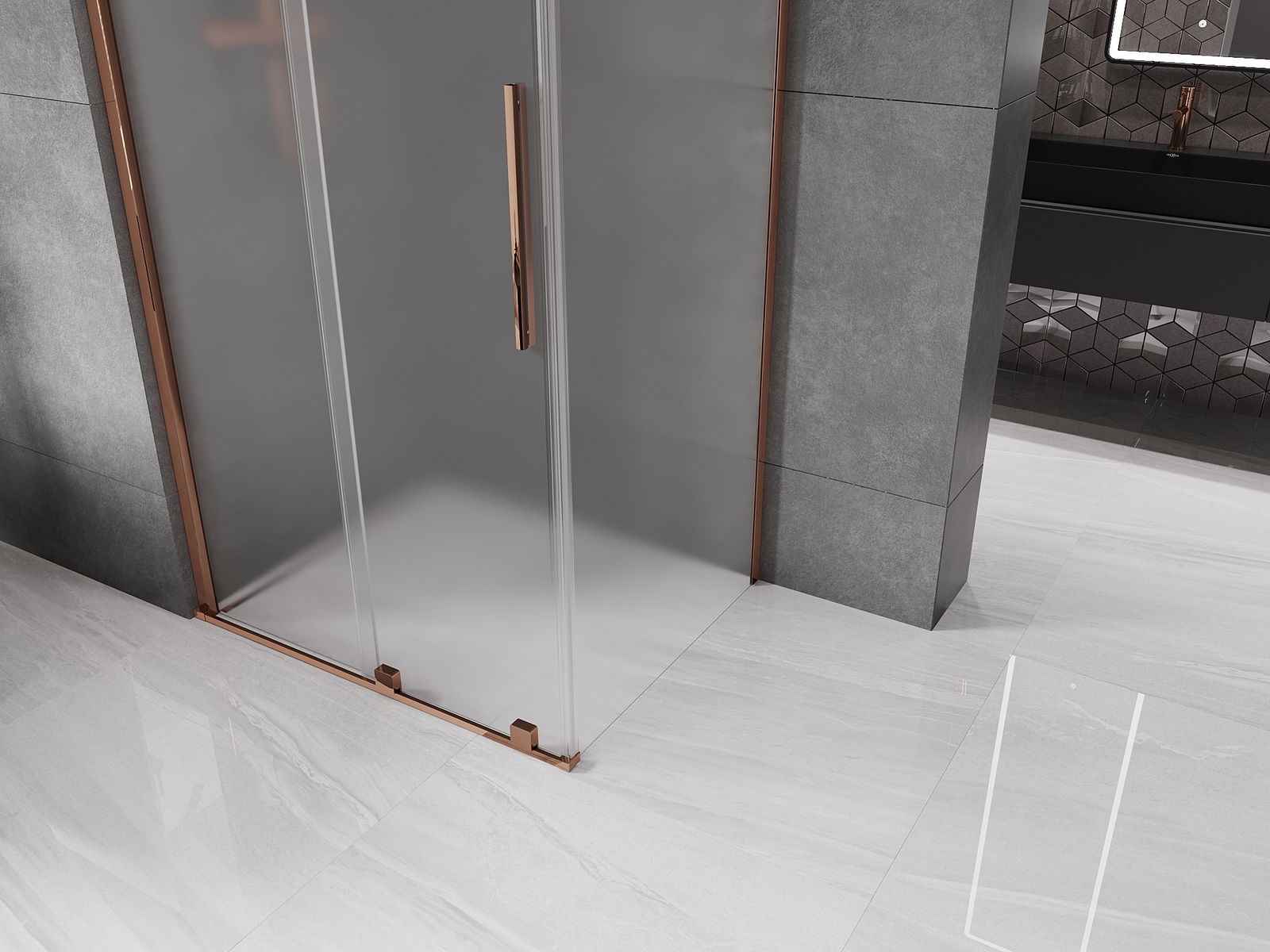 Mexen Velar tolóajtós zuhanykabin 120 x 110 cm, homályos, rózsaarany - 871-120-110-31-60