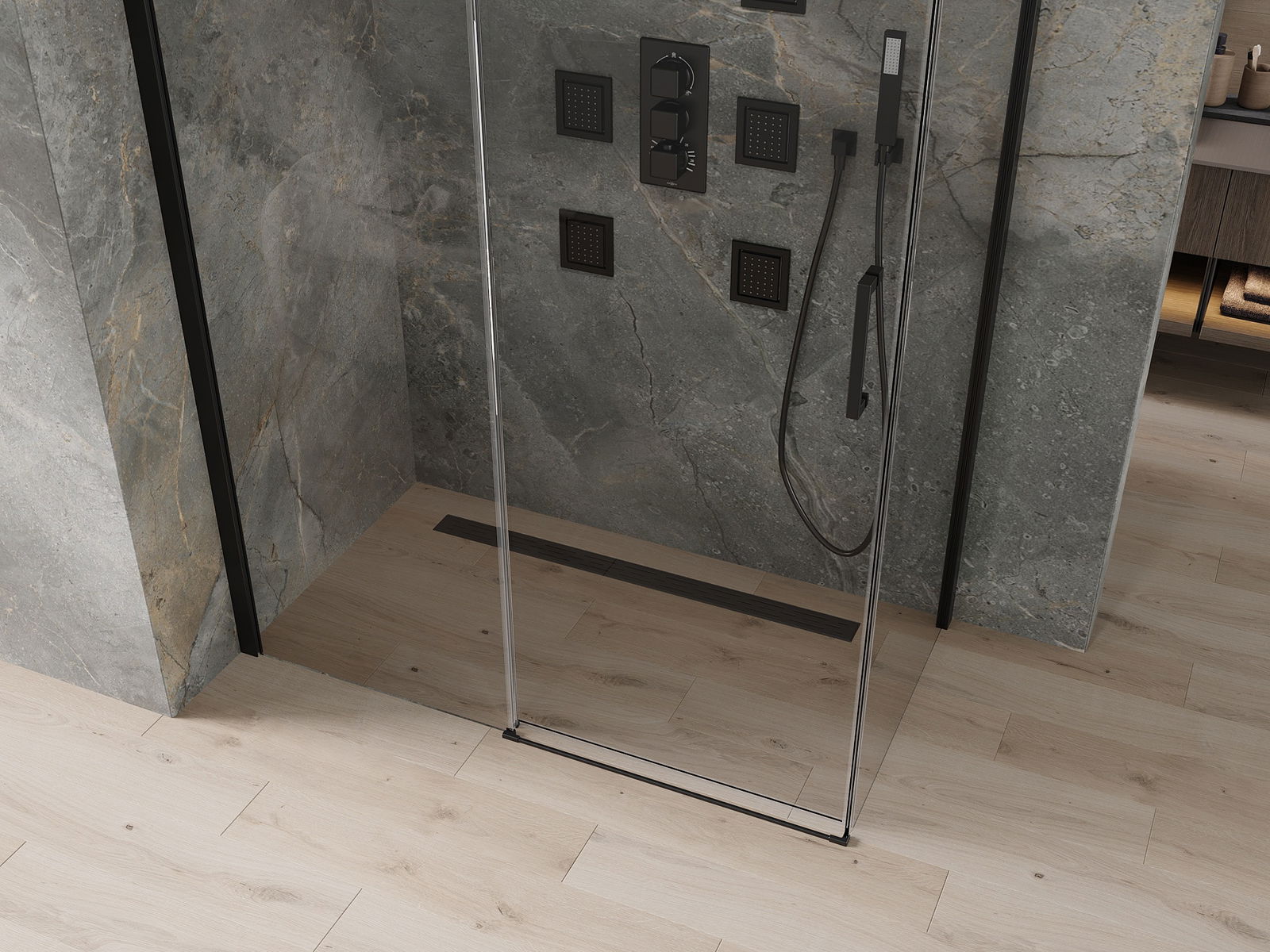 Az Ön igényeitől függően a terméket mind a zuhany tálcára, mind a padlóra lehet felszerelni. Az univerzális rögzítési módszer lehetővé teszi a termék hozzáigazítását a különféle fürdőszobákhoz és a hely konfigurálását.