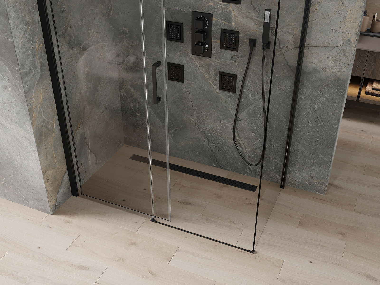 Az univerzális szerelőrendszer használatának köszönhetően a zuhany ajtók jobbra vagy balra szerelhetők, az Ön igényeitől függően. Ennek köszönhetően könnyen megtervezheti a fürdőszoba helyére szabott zuhanyt.