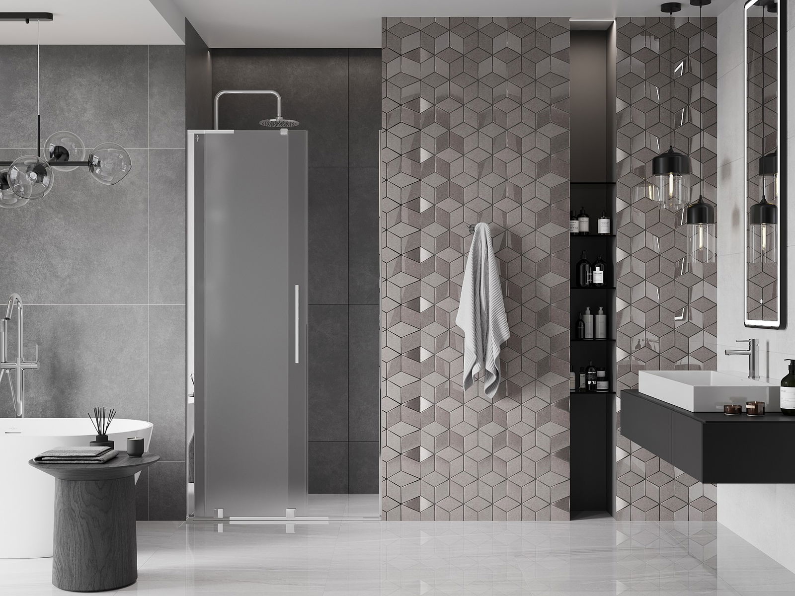 A terméket igény szerint felszerelheti akár a zuhanytálcára, akár közvetlenül a padlóra. Az univerzális szerelési mód lehetővé teszi a termék alkalmazkodását különböző típusú fürdőszobákhoz és térbeli konfigurációkhoz.