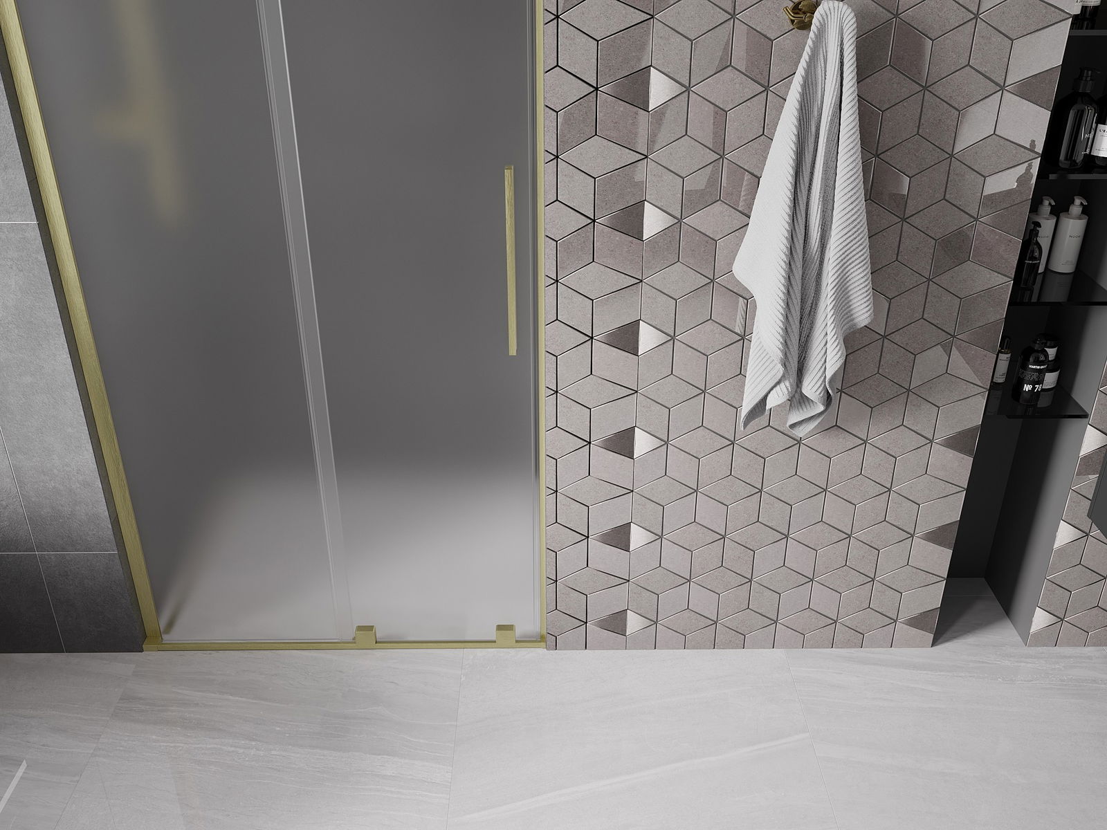 Mexen Velar L tolóajtós zuhanyajtó 110 cm, jégvirágos, arany szálcsiszolt - 871-110-003-31-55