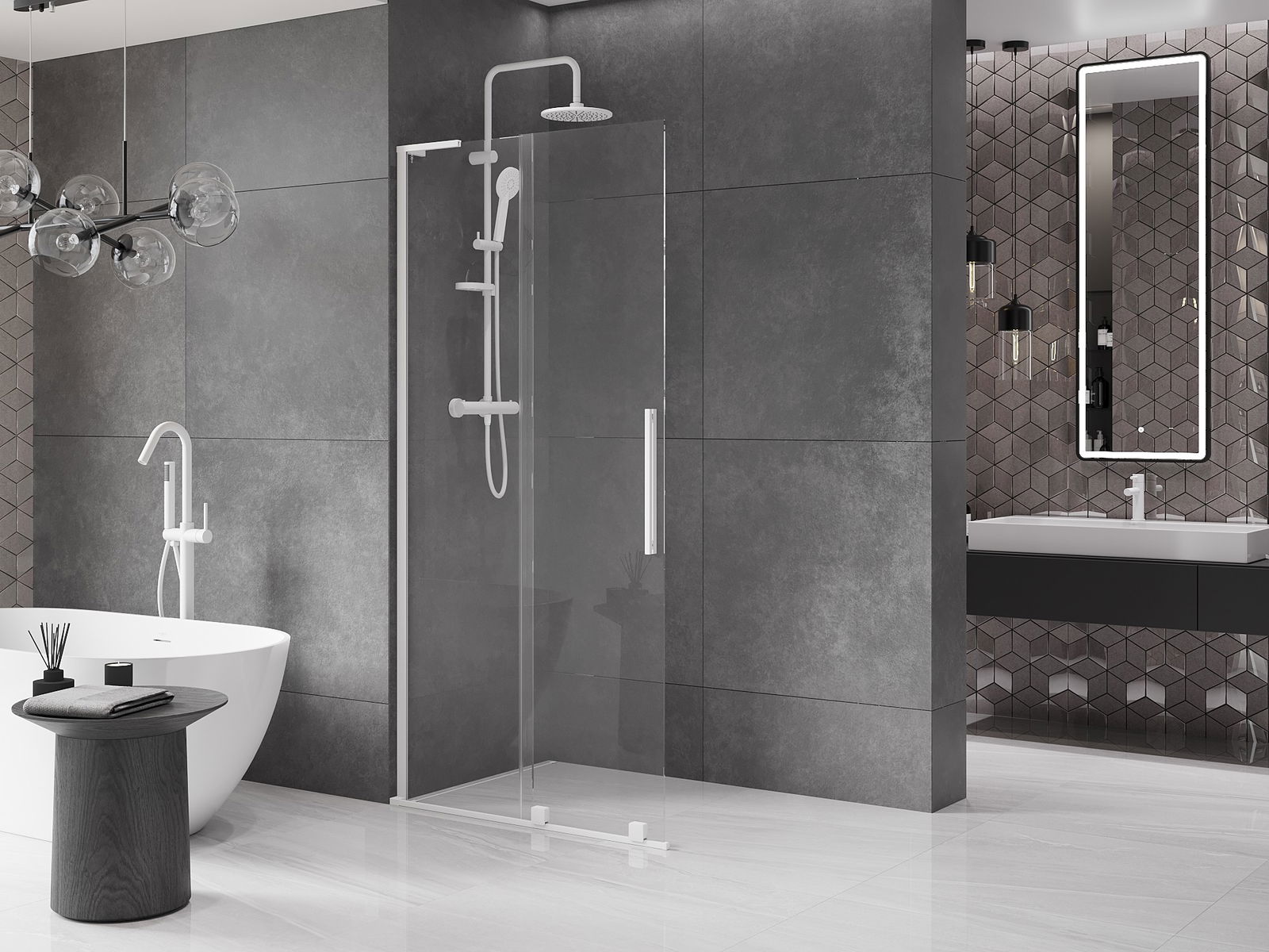 Mexen Velar L zuhanyfal tolóajtóval Walk-in 100 x 200 cm, átlátszó 8 mm, fehér - 871-100-003-03-20