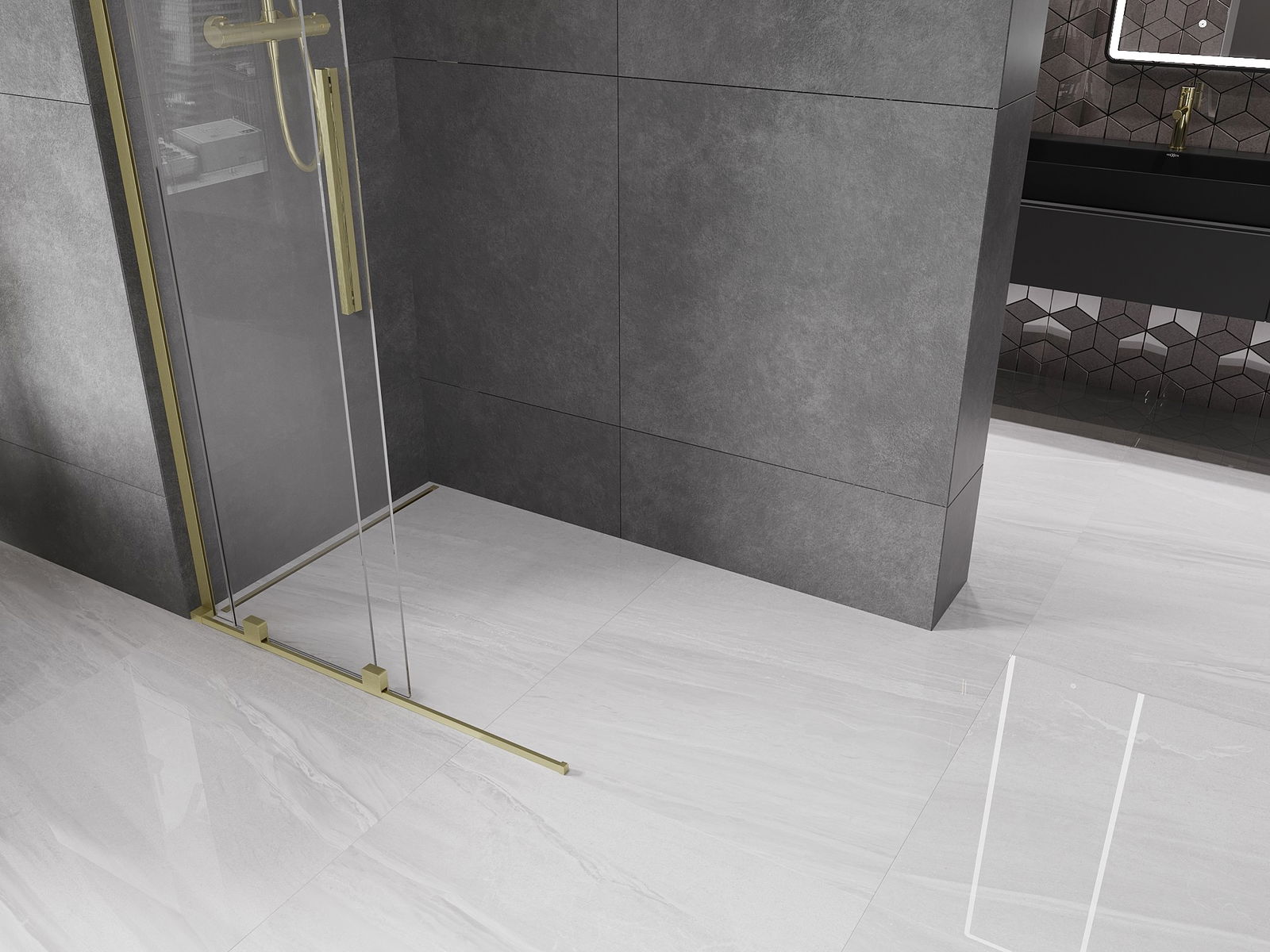 Mexen Velar L 120 x 200 cm-es, áthúzható Walk-in zuhanyfal, 8 mm-es átlátszó, arany kefélt - 871-120-003-03-55