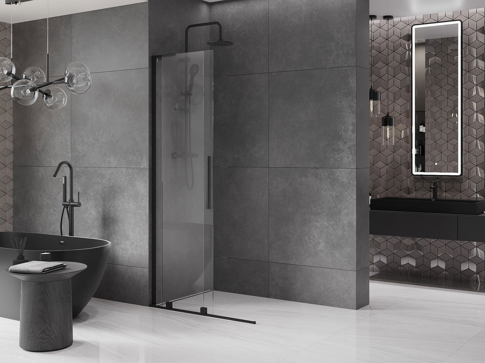 Mexen Velar L zuhanyfal tolóajtós Walk-in 120 x 200 cm, áttetsző 8 mm, fekete - 871-120-003-03-70