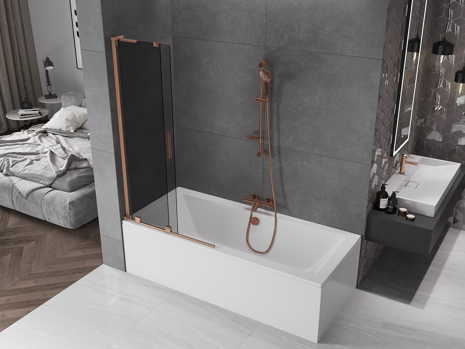 Mexen Velar L kádparaván 2-szárnyas tolható 90 x 150 cm, grafit, kefélt réz - 896-090-003-41-65