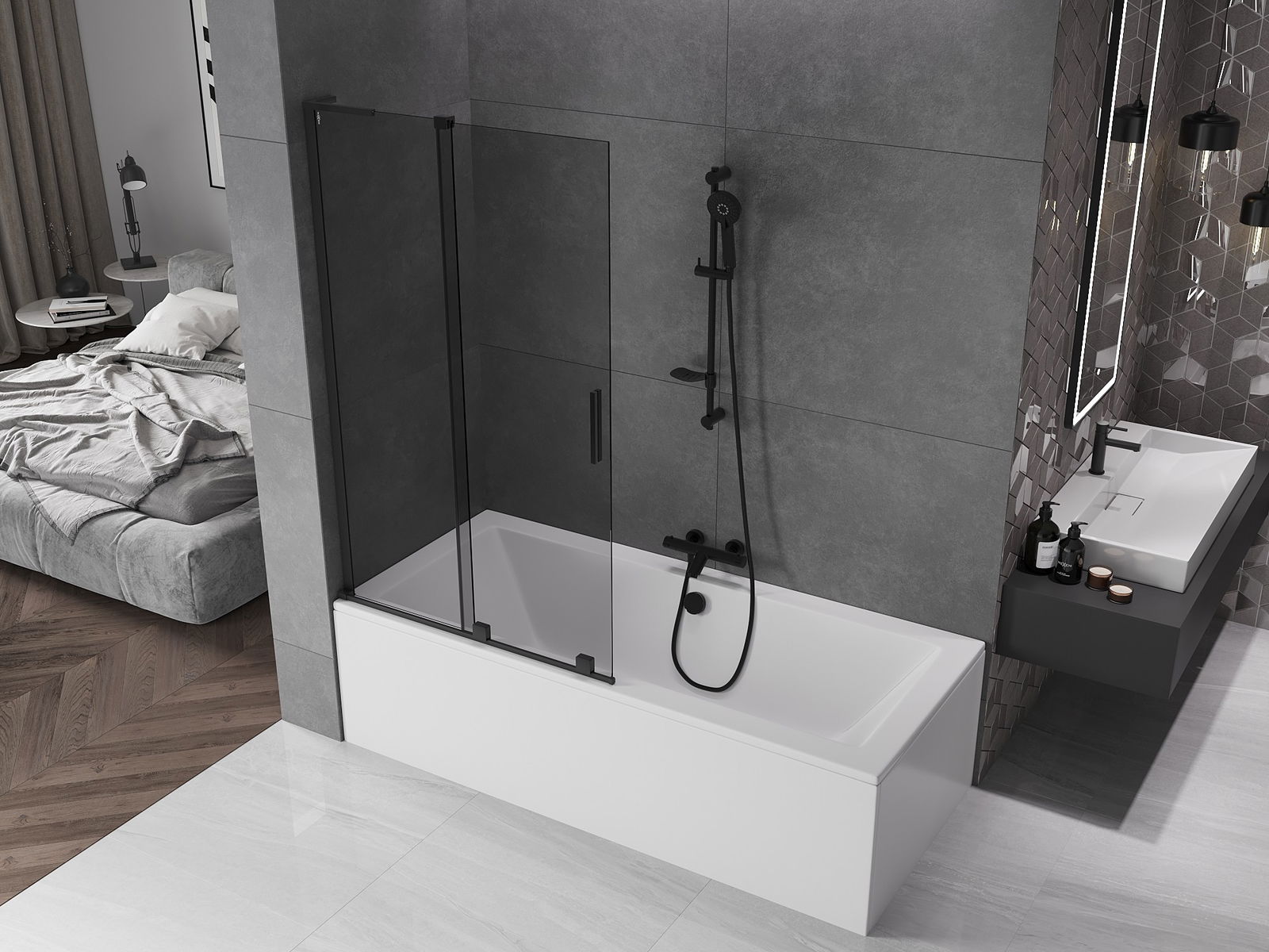 Mexen Velar L kádparaván 2-szárnyú toló 100 x 150 cm, grafit, fekete - 896-100-003-41-70