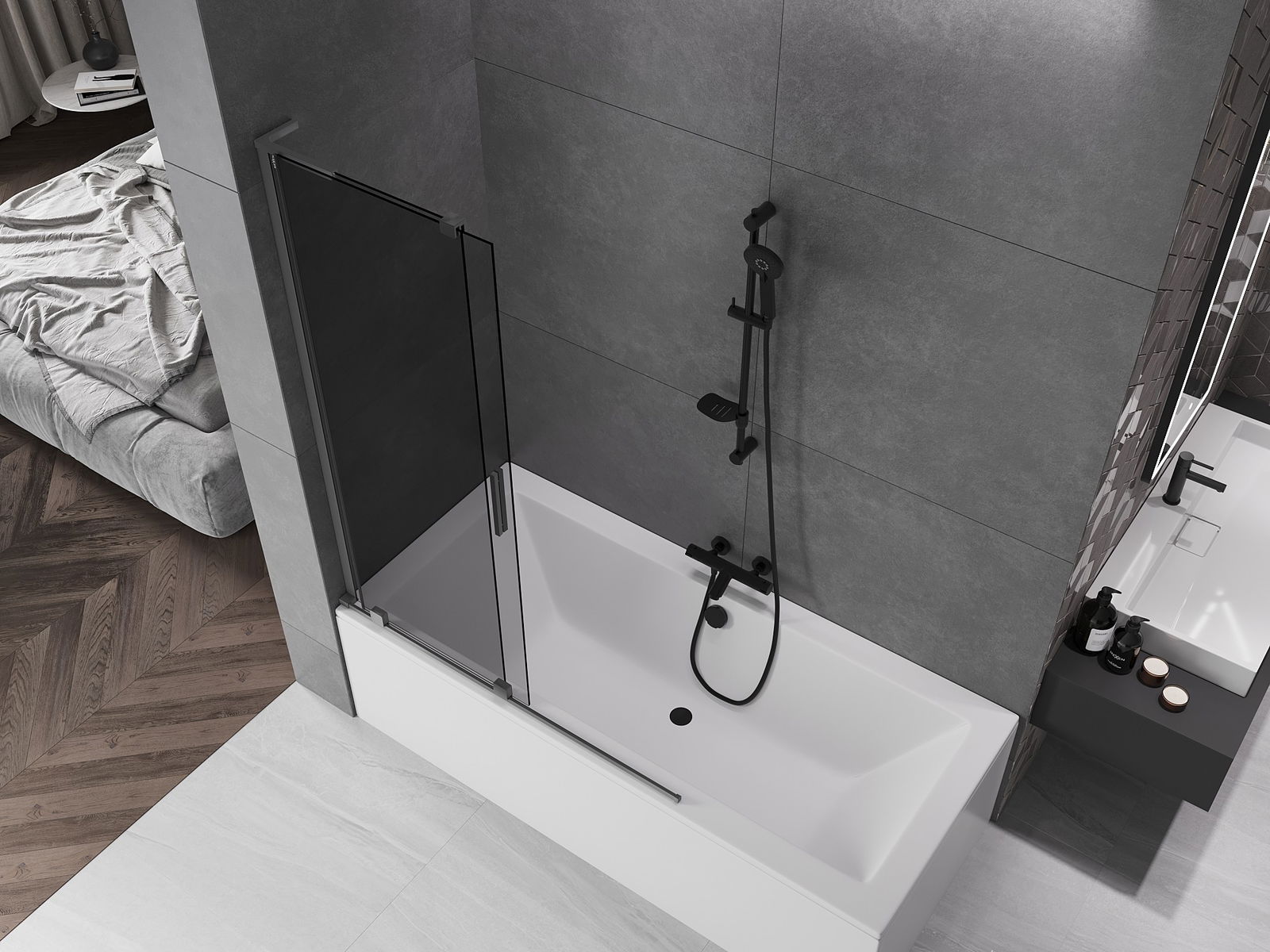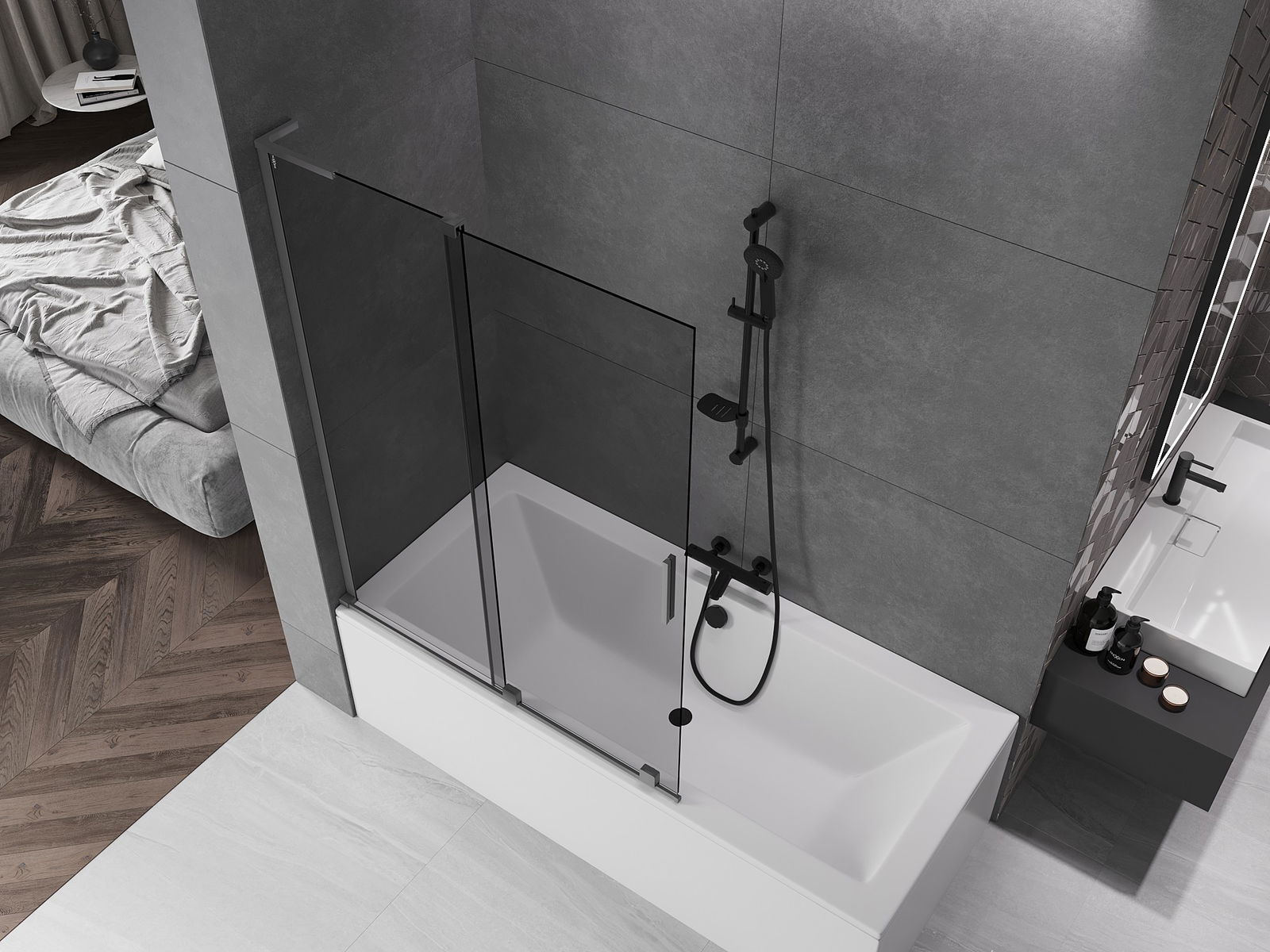 Mexen Velar L kádparaván kétszárnyas tolóajtóval 120 x 150 cm, grafit, gun metal - 896-120-003-41-95