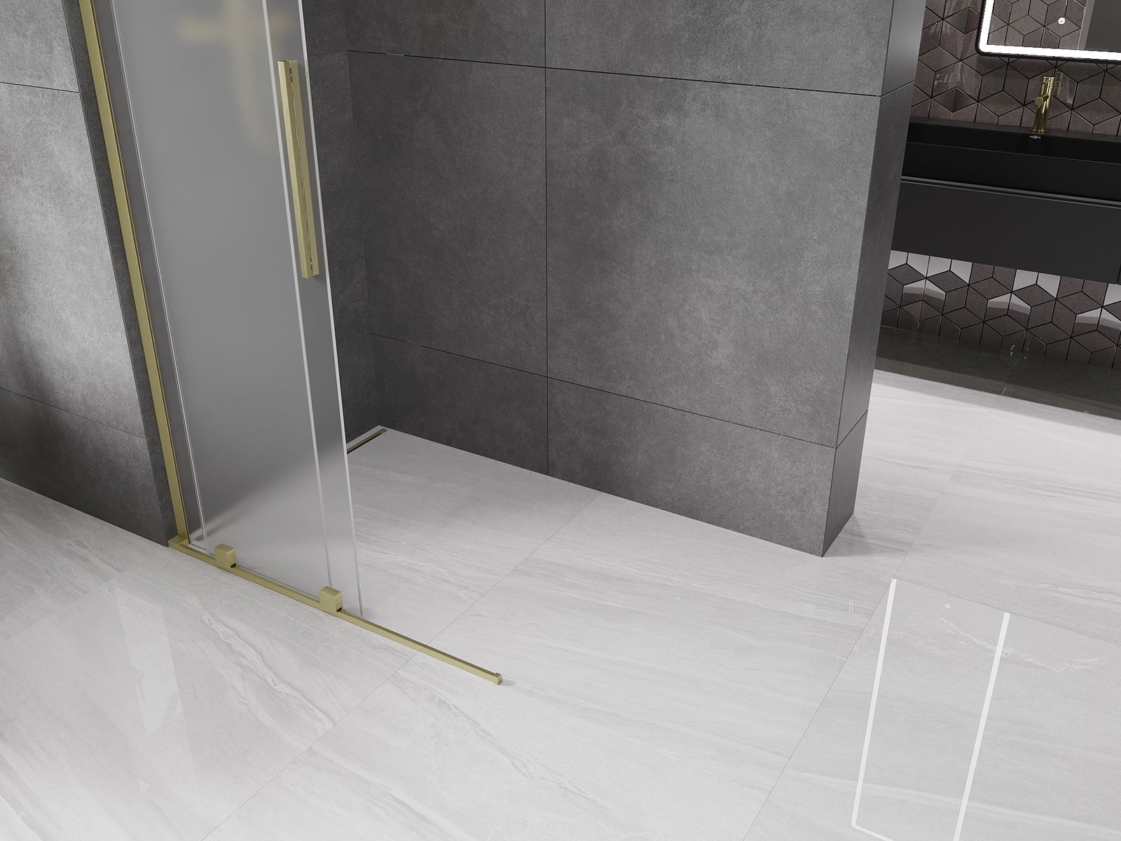 Mexen Velar L tolóajtós zuhanyfal Walk-in 90 x 200 cm, fagyott 8 mm, arany kefélt - 871-090-003-33-55