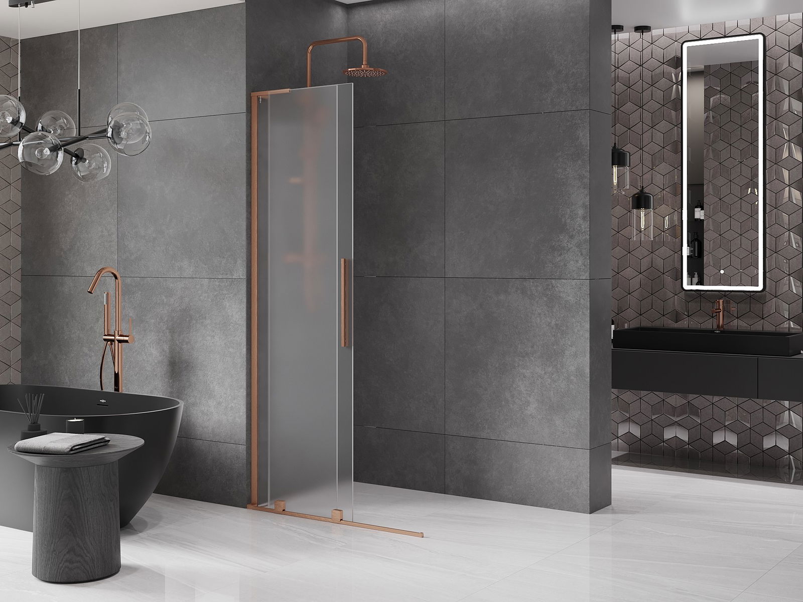 Mexen Velar L toló zuhanyfal Walk-in 100 x 200 cm, fagyott 8 mm, csiszolt réz - 871-100-003-33-65